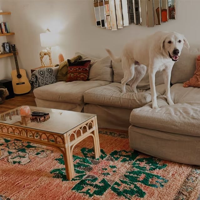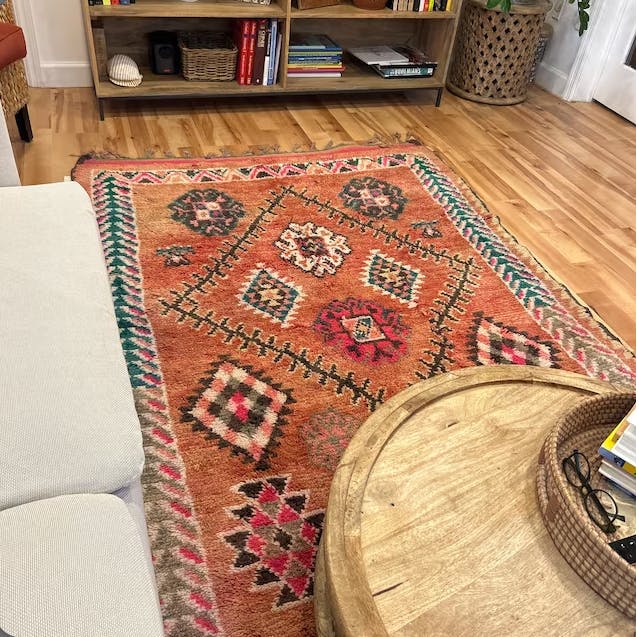 This rug is the prized possession of my apartment! Every day I look at it and feel so happy I made this purchase. The shop owner got it to me quickly! Incredibly