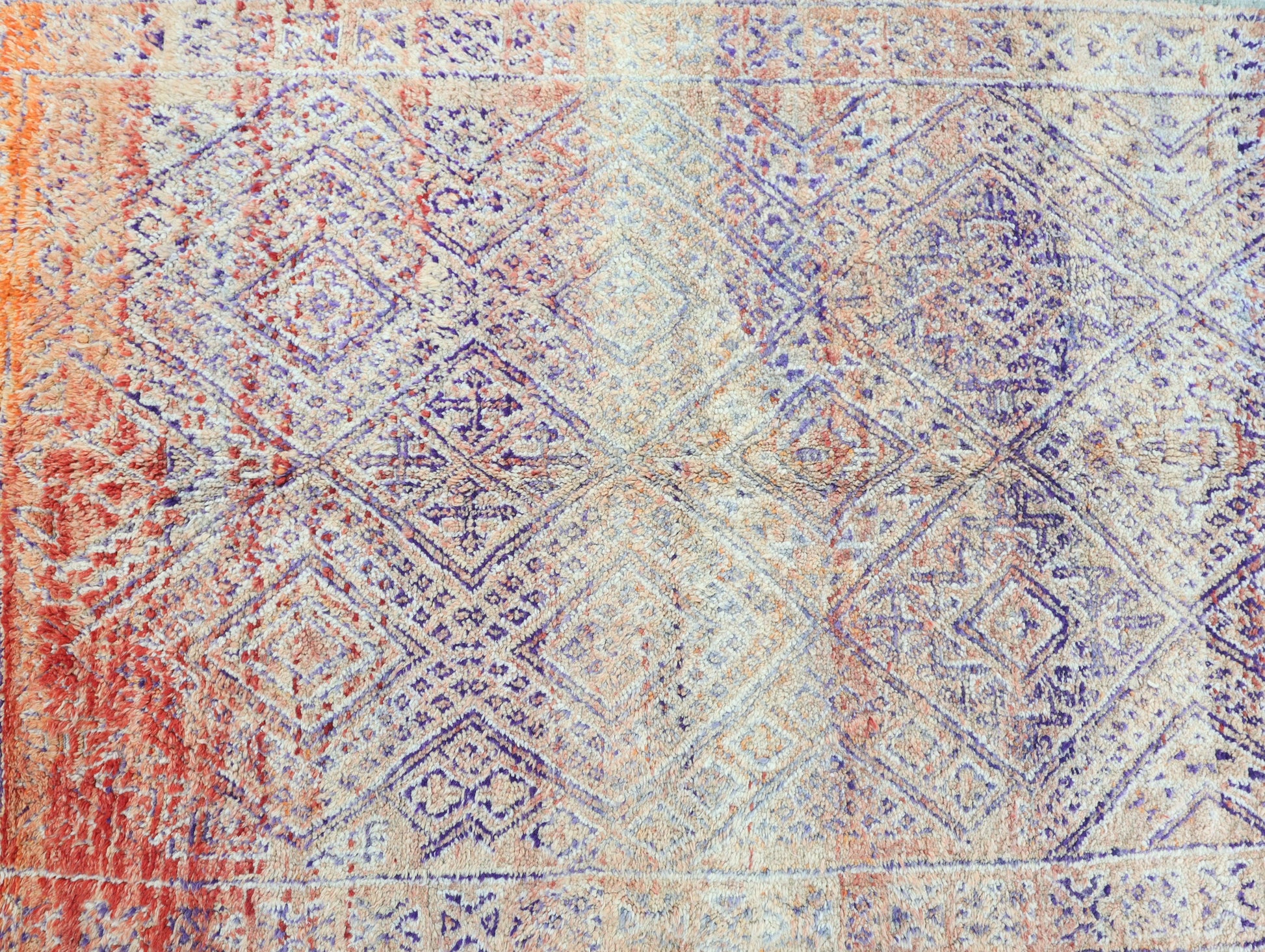 A truly unique vintage rug, meticulously hand-knotted by the Zemmour tribes from Morocco's Middle Atlas range.