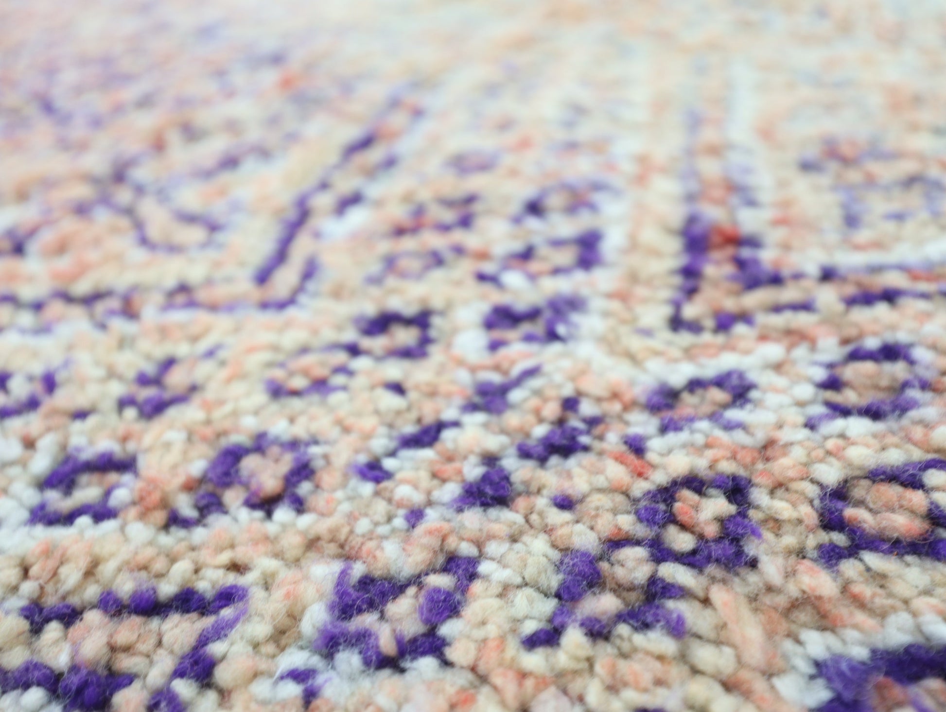 Wool, a sacred material for the Amazigh (Berber) people, forms the cornerstone of Moroccan rug design. Durable, long-lasting, and soft underfoot, wool is both functional and comfortable. In this piece, the wool pile is expertly knotted onto a wool foundation, adding substance and allowing it to gracefully embrace the floor.