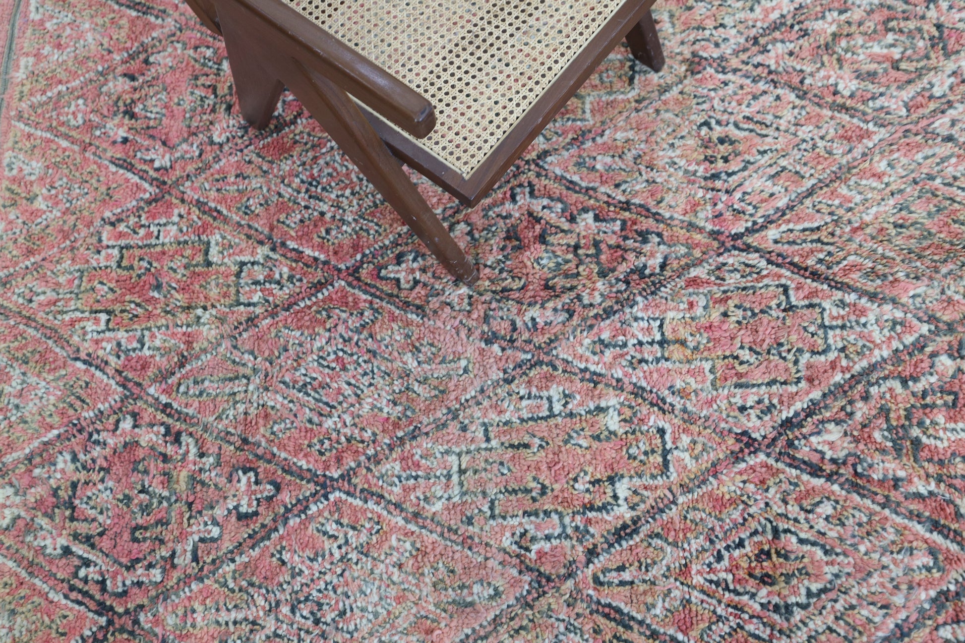 A truly unique vintage rug, meticulously hand-knotted by the Zemmour tribes from Morocco's Middle Atlas range.
