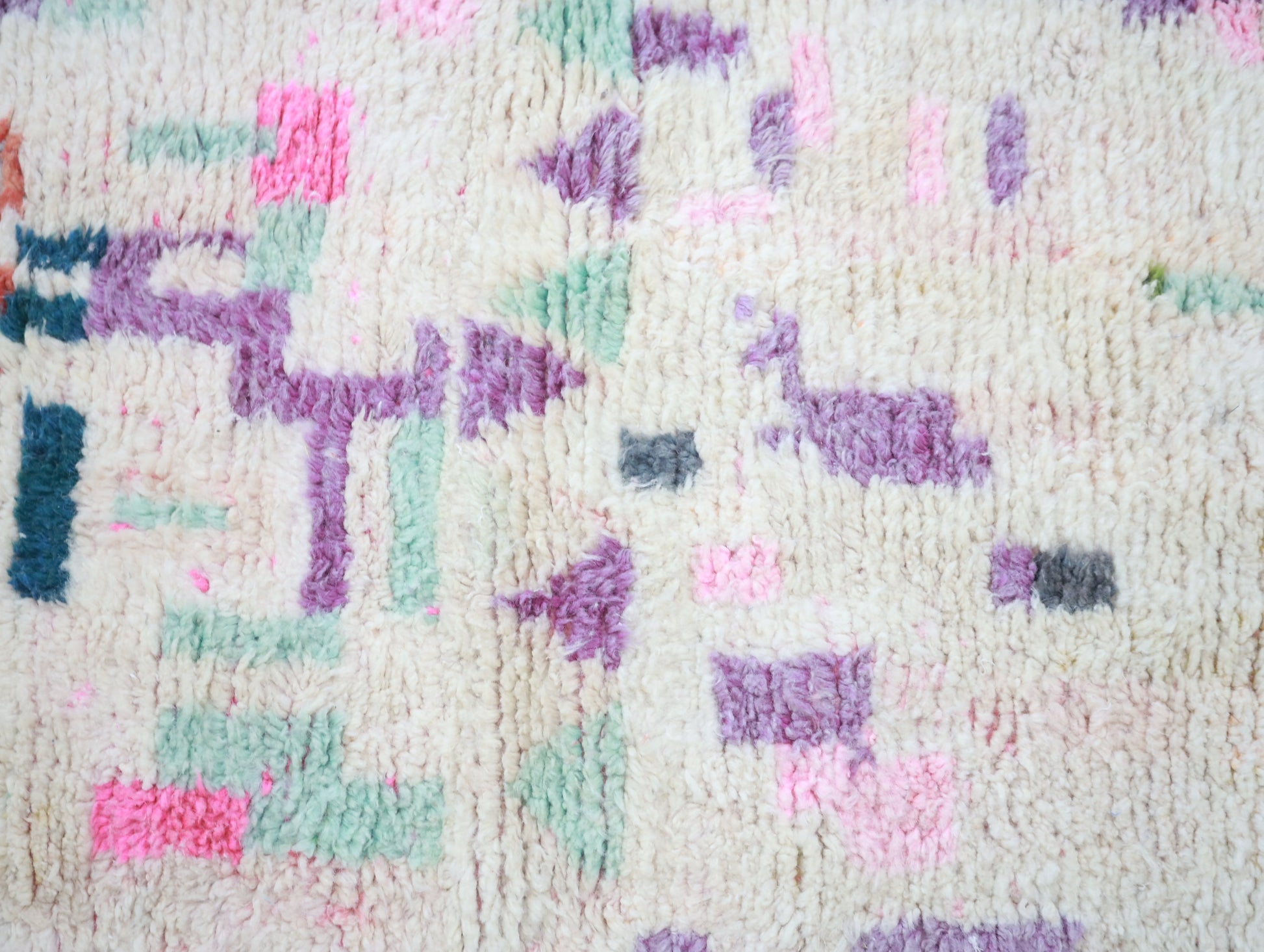 A singular moroccan rug, meticulously woven in the small city of Boujaad in Morocco's Chaouia-Ouardigha region.