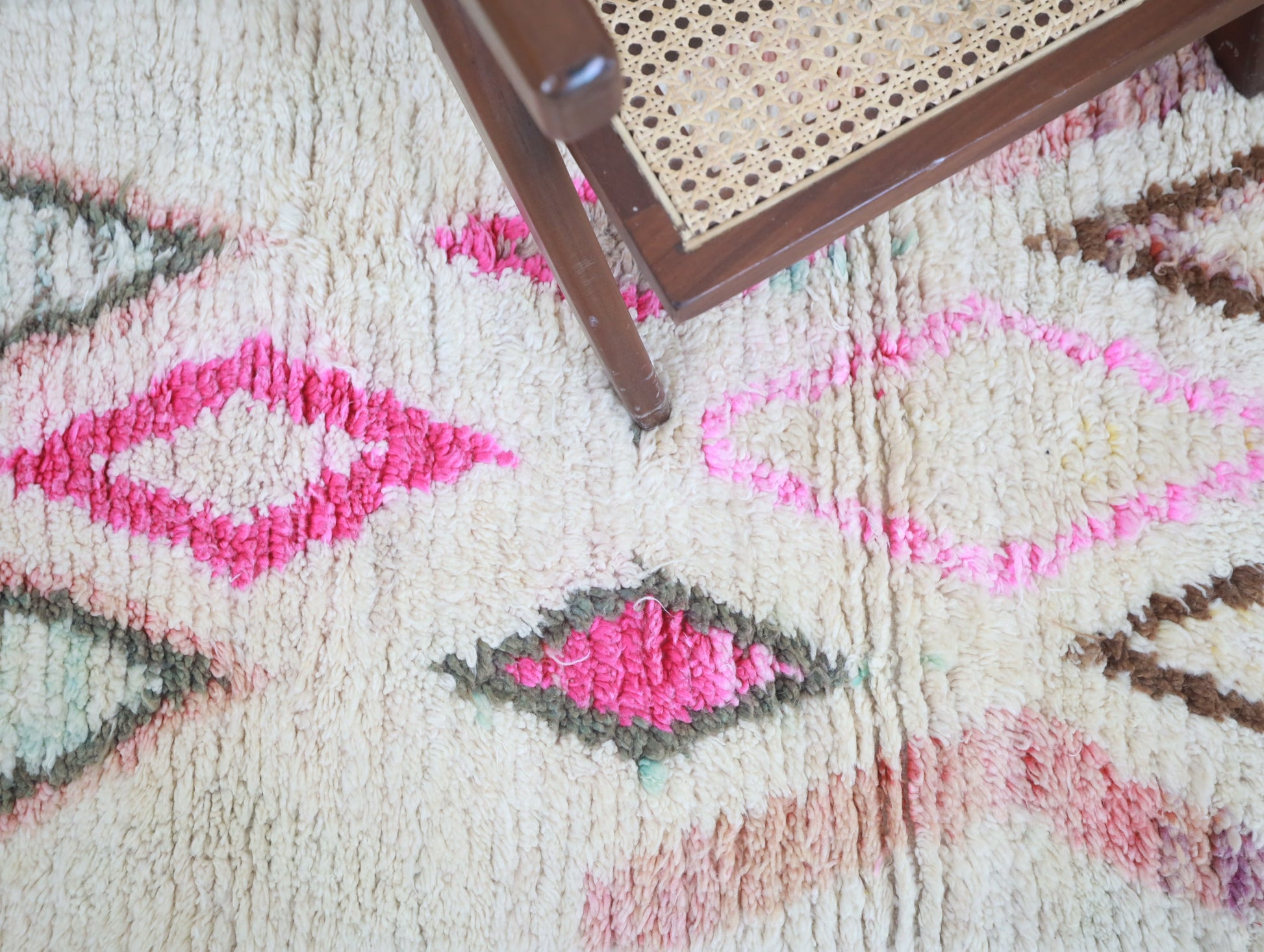 A singular moroccan rug, meticulously woven in the small city of Boujaad in Morocco's Chaouia-Ouardigha region.