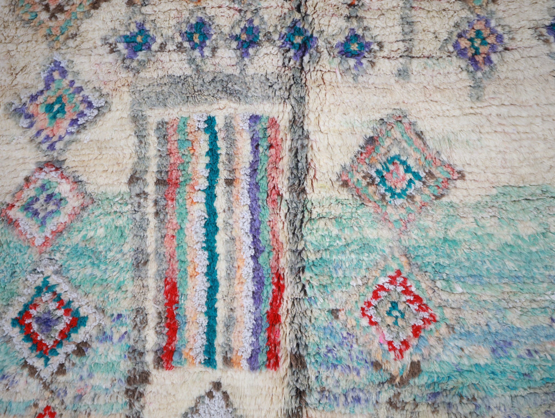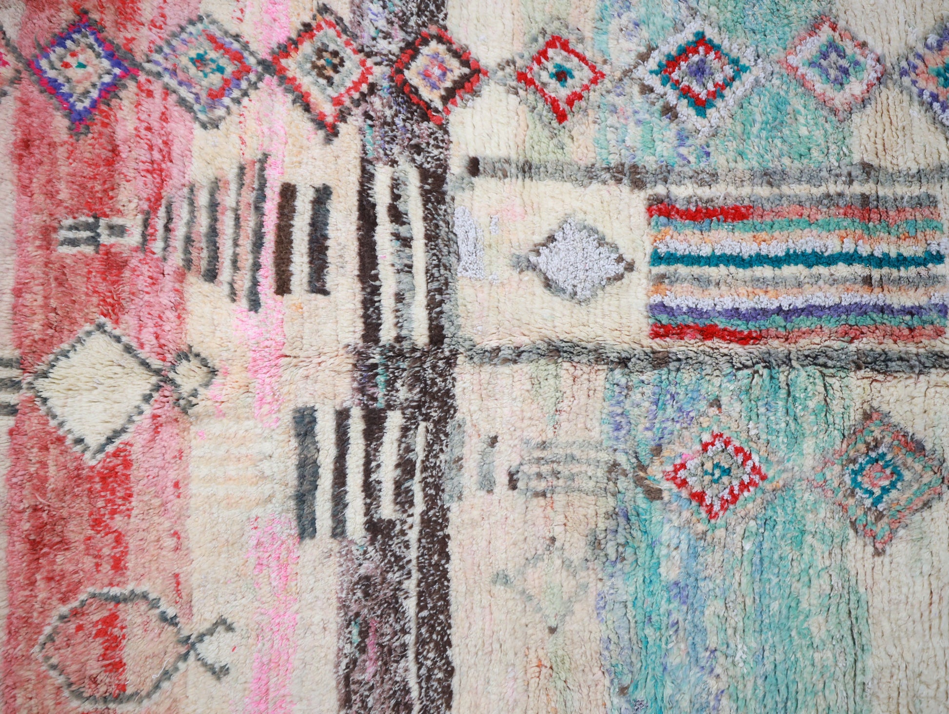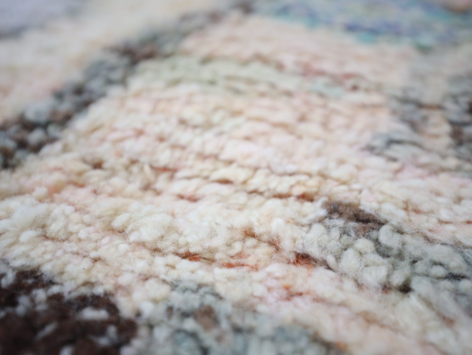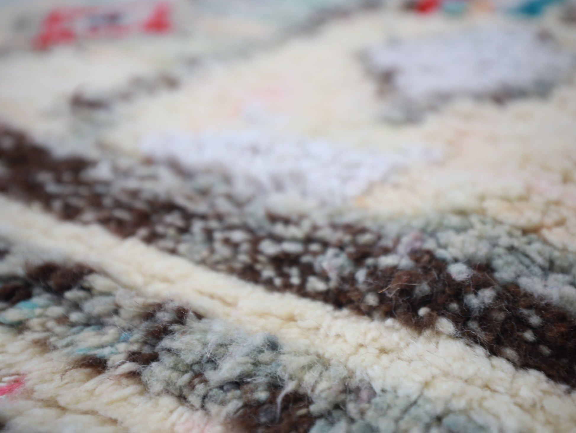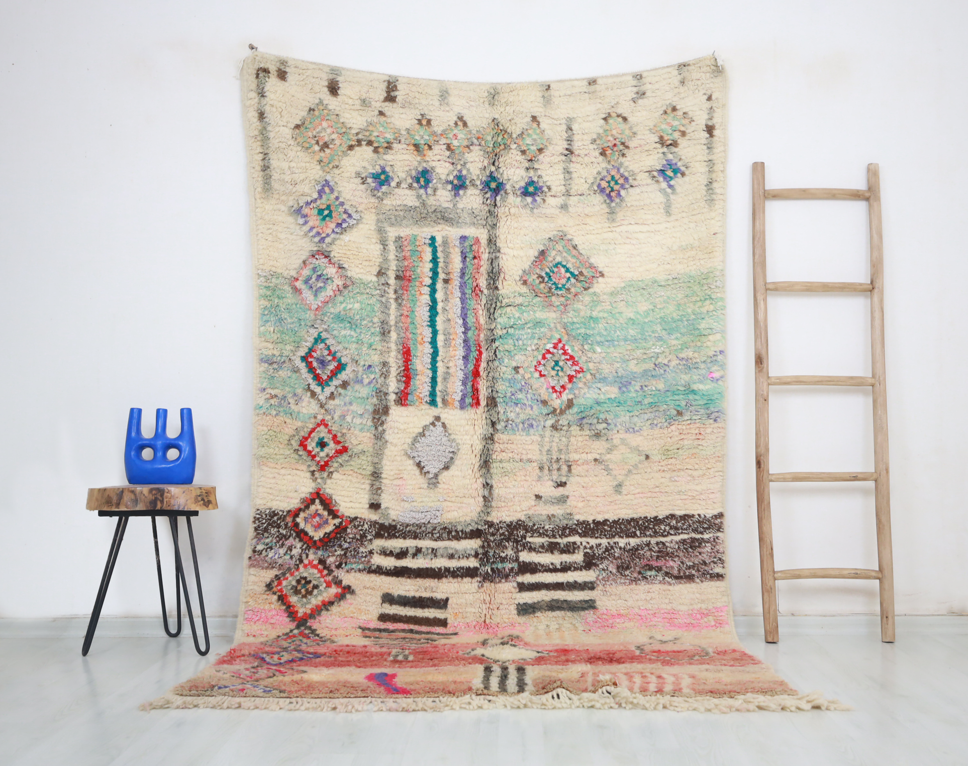 A singular moroccan rug, meticulously woven in the small city of Boujaad in Morocco's Chaouia-Ouardigha region.