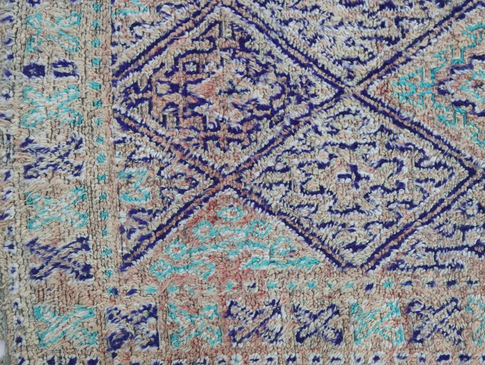 A truly unique vintage rug, meticulously hand-knotted by the Zemmour tribes from Morocco's Middle Atlas range.