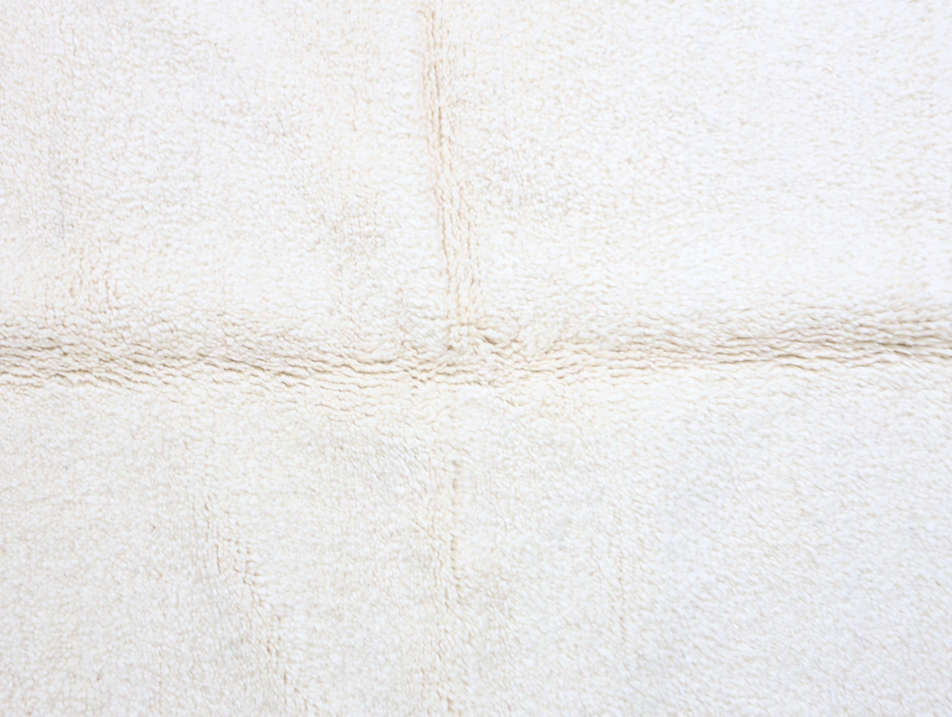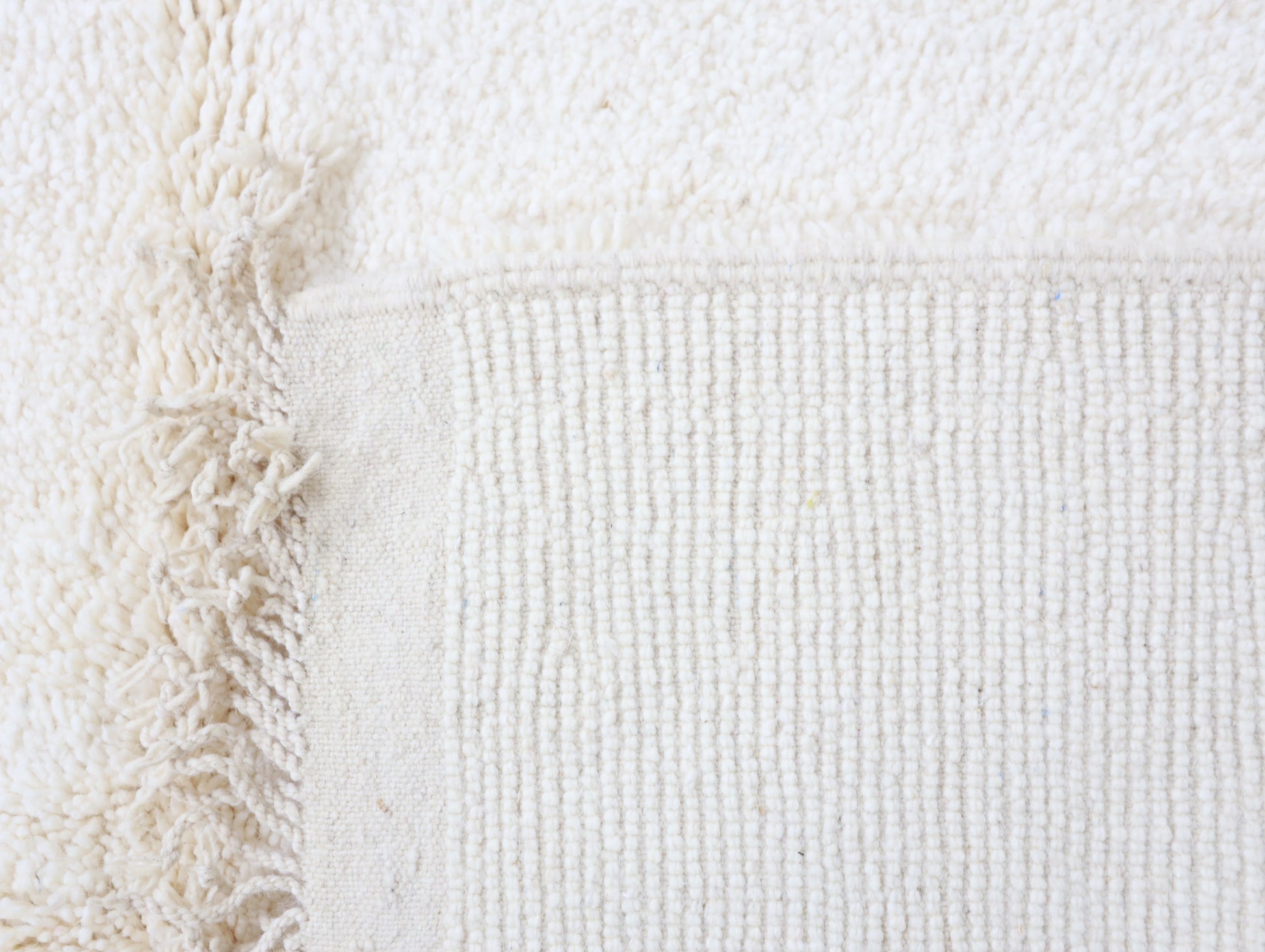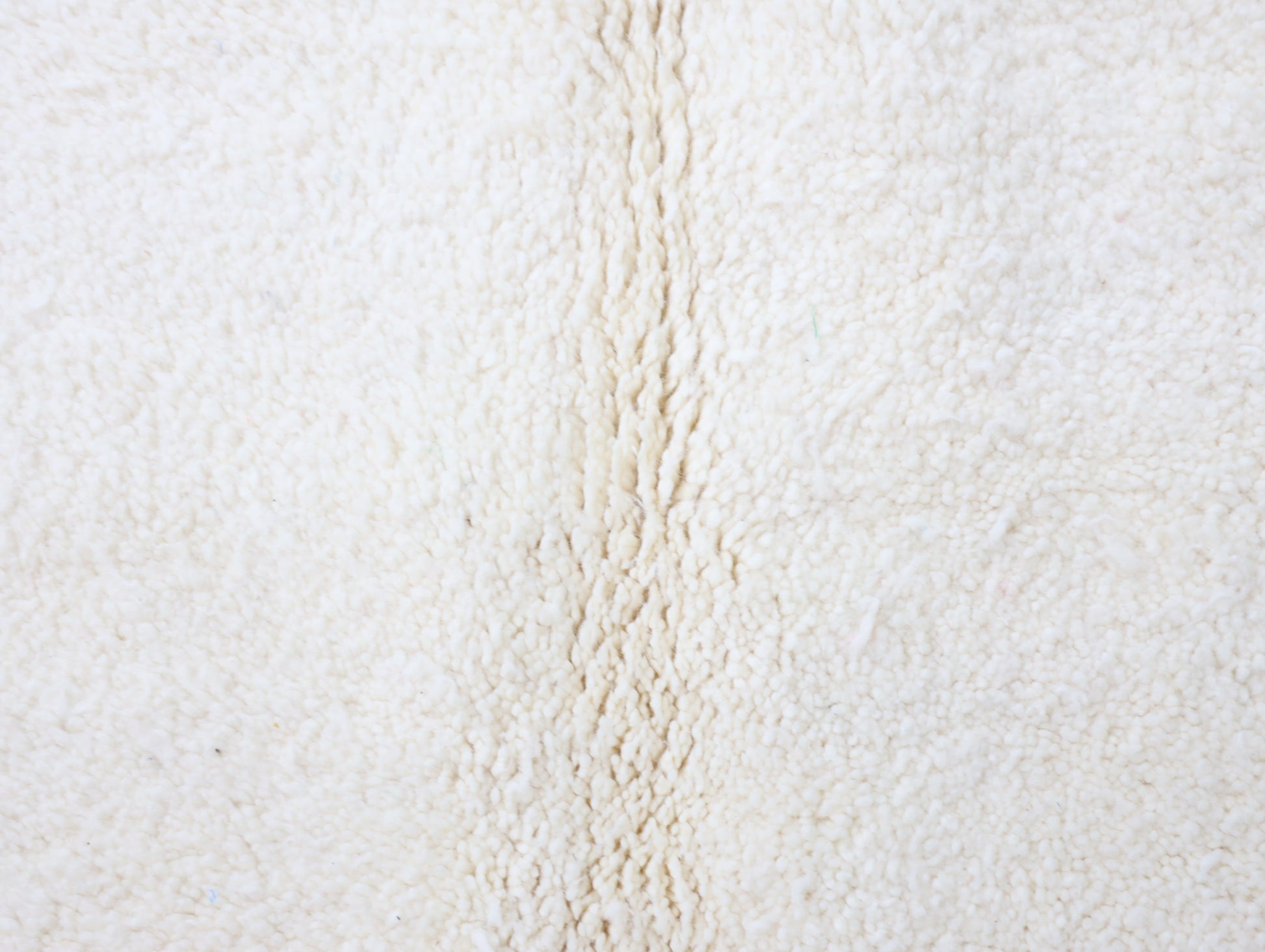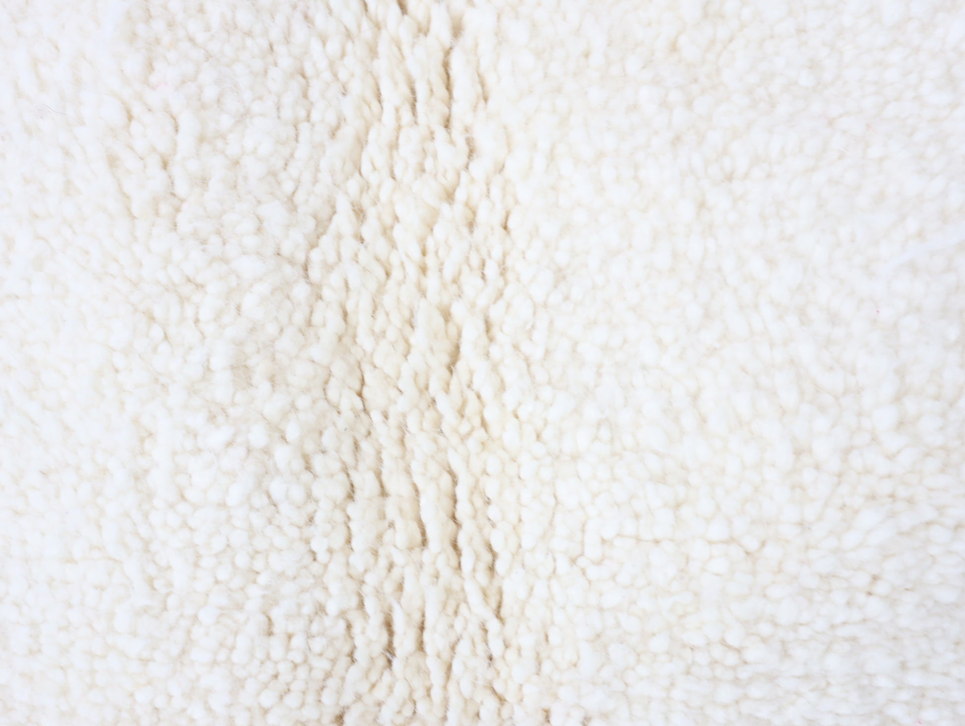 Wool, a sacred material for the Amazigh (Berber) people, forms the cornerstone of Moroccan rug design. Durable, long-lasting, and soft underfoot, wool is both functional and comfortable. In this piece, the wool pile is expertly knotted onto a wool foundation, adding substance and allowing it to gracefully embrace the floor.