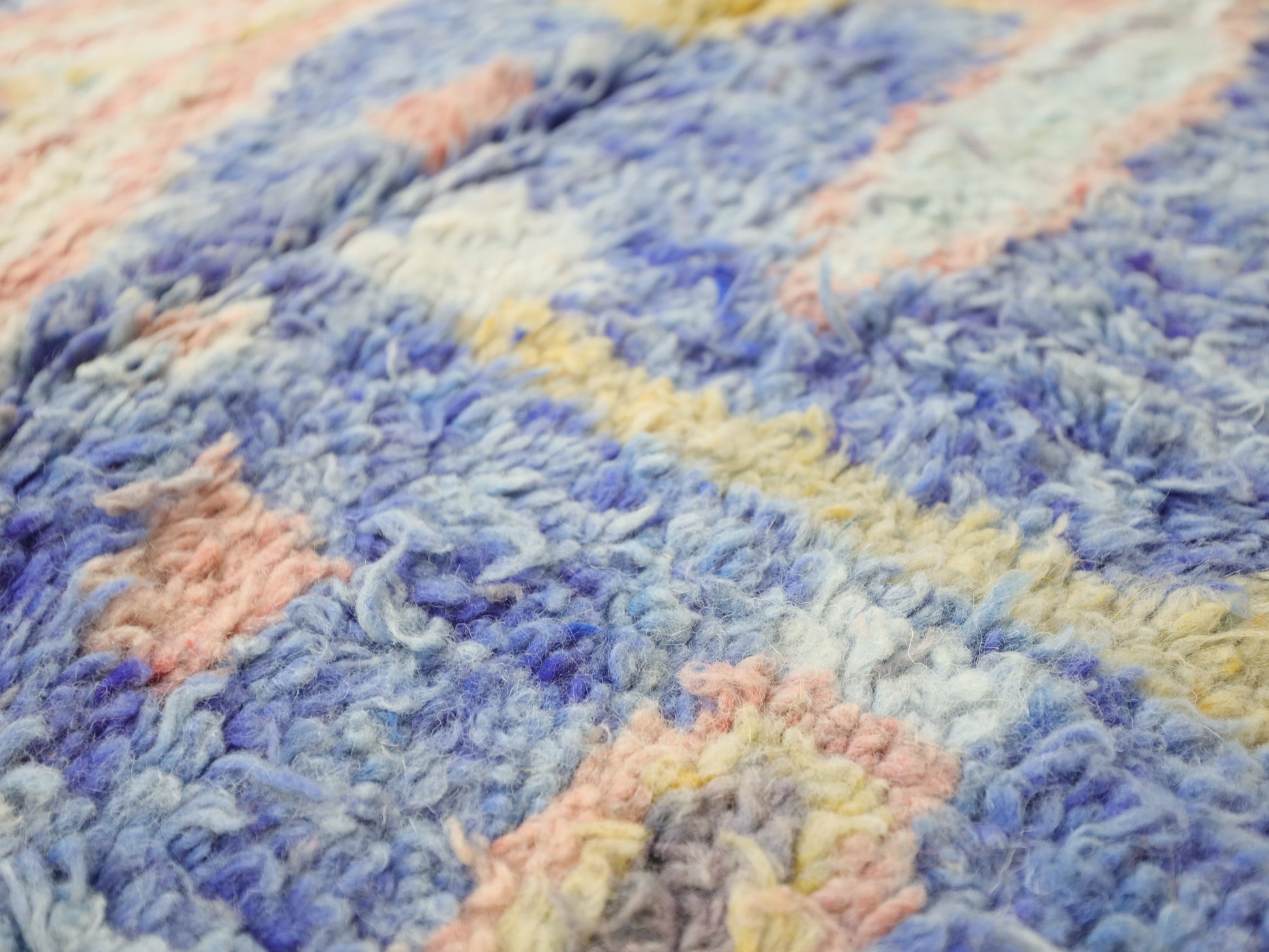 A singular moroccan rug, meticulously woven in the small city of Boujaad in Morocco's Chaouia-Ouardigha region.