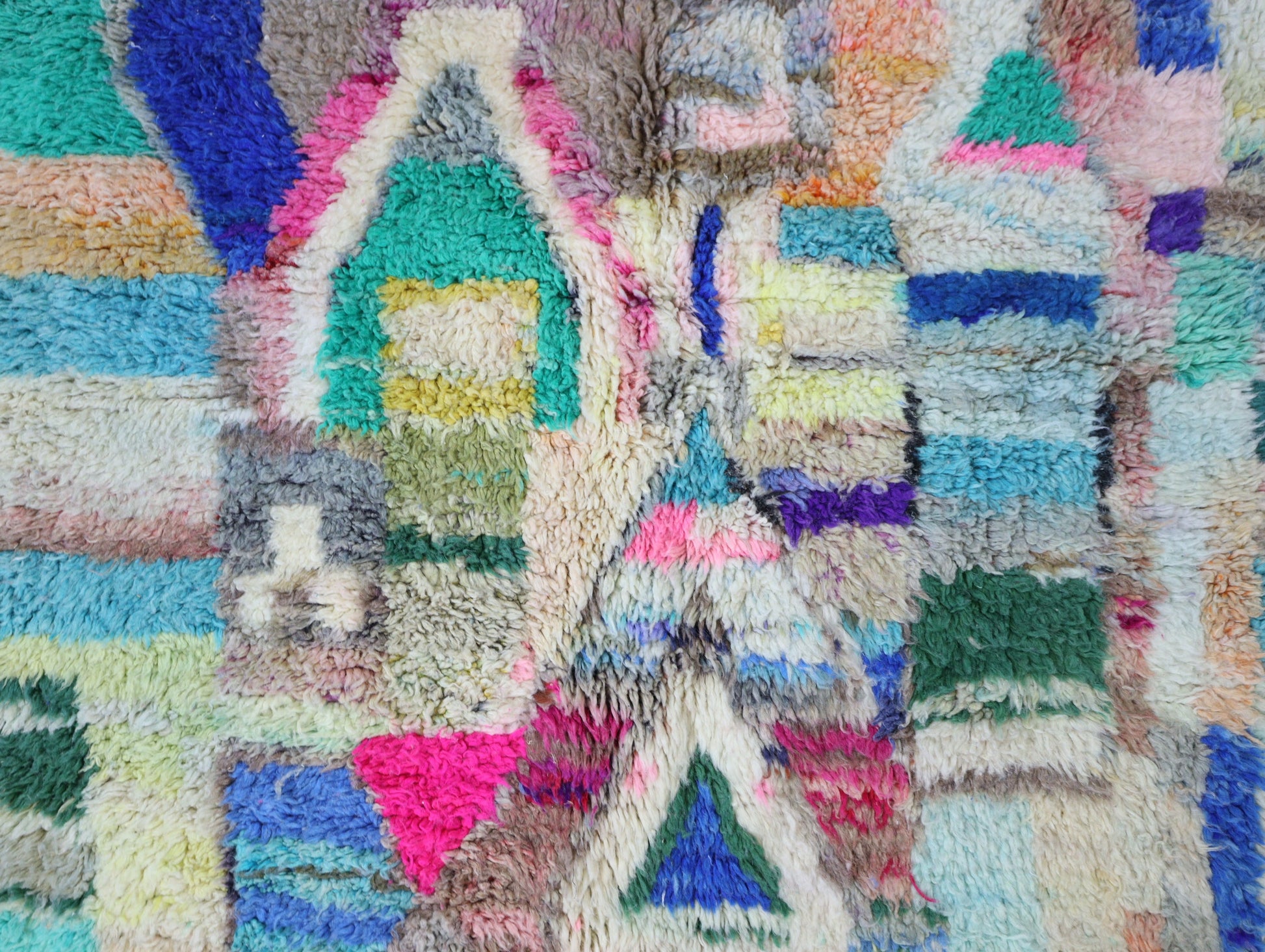 A singular moroccan rug, meticulously woven in the small city of Boujaad in Morocco's Chaouia-Ouardigha region.