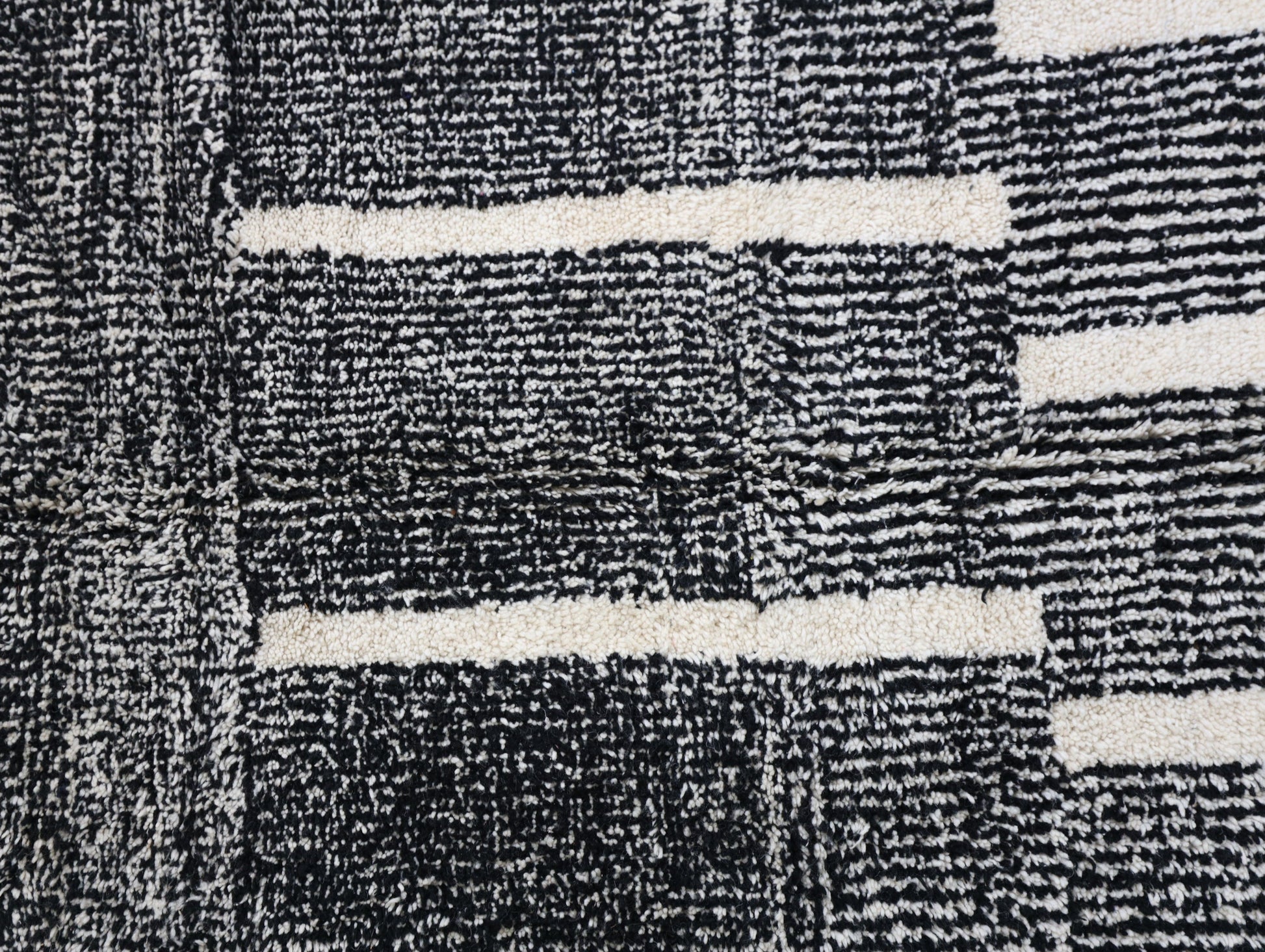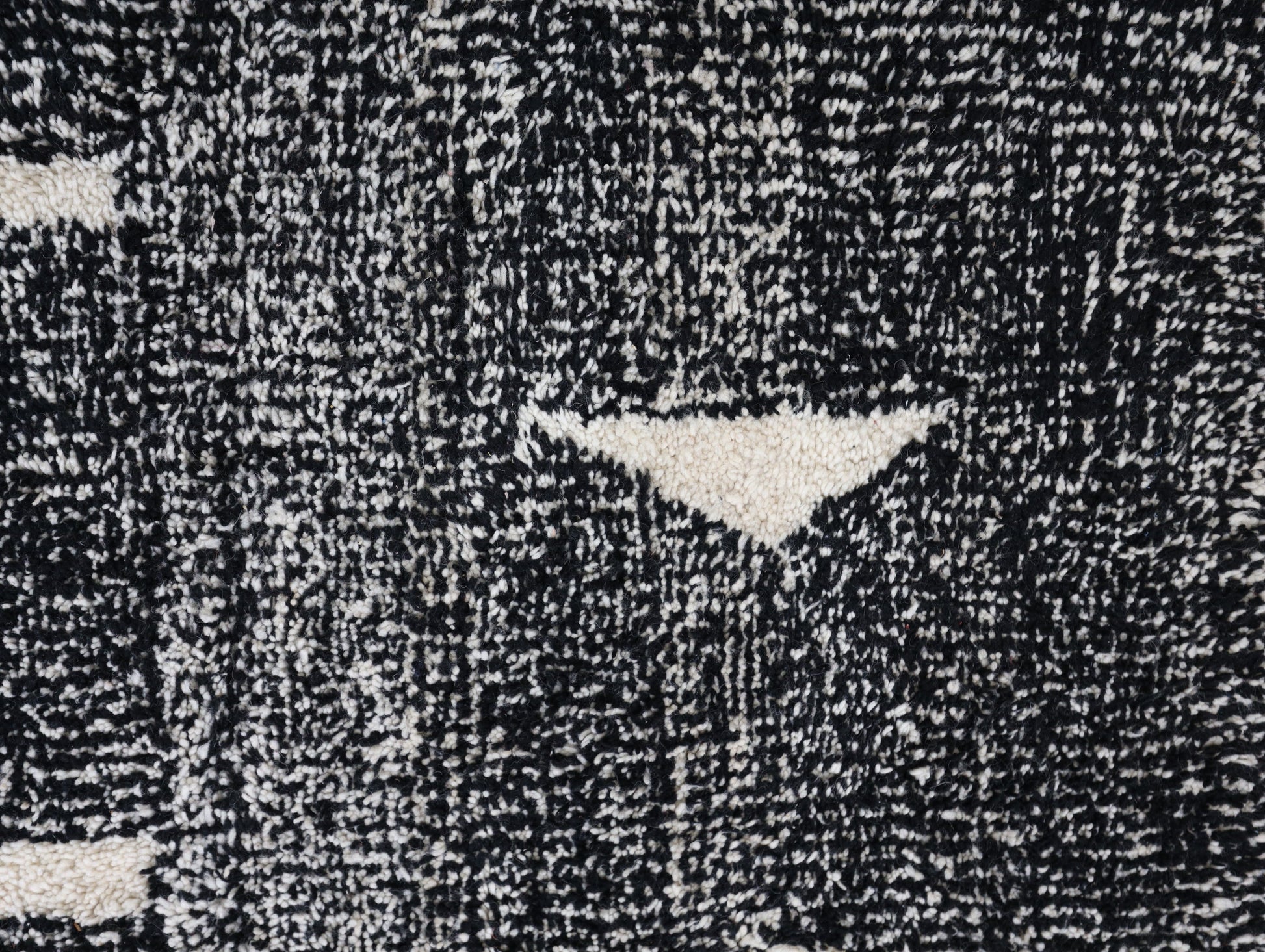 This unique rug, singular in its design, was intricately hand-knotted by the Beni Ourain tribes nestled in Morocco's Middle Atlas mountains.