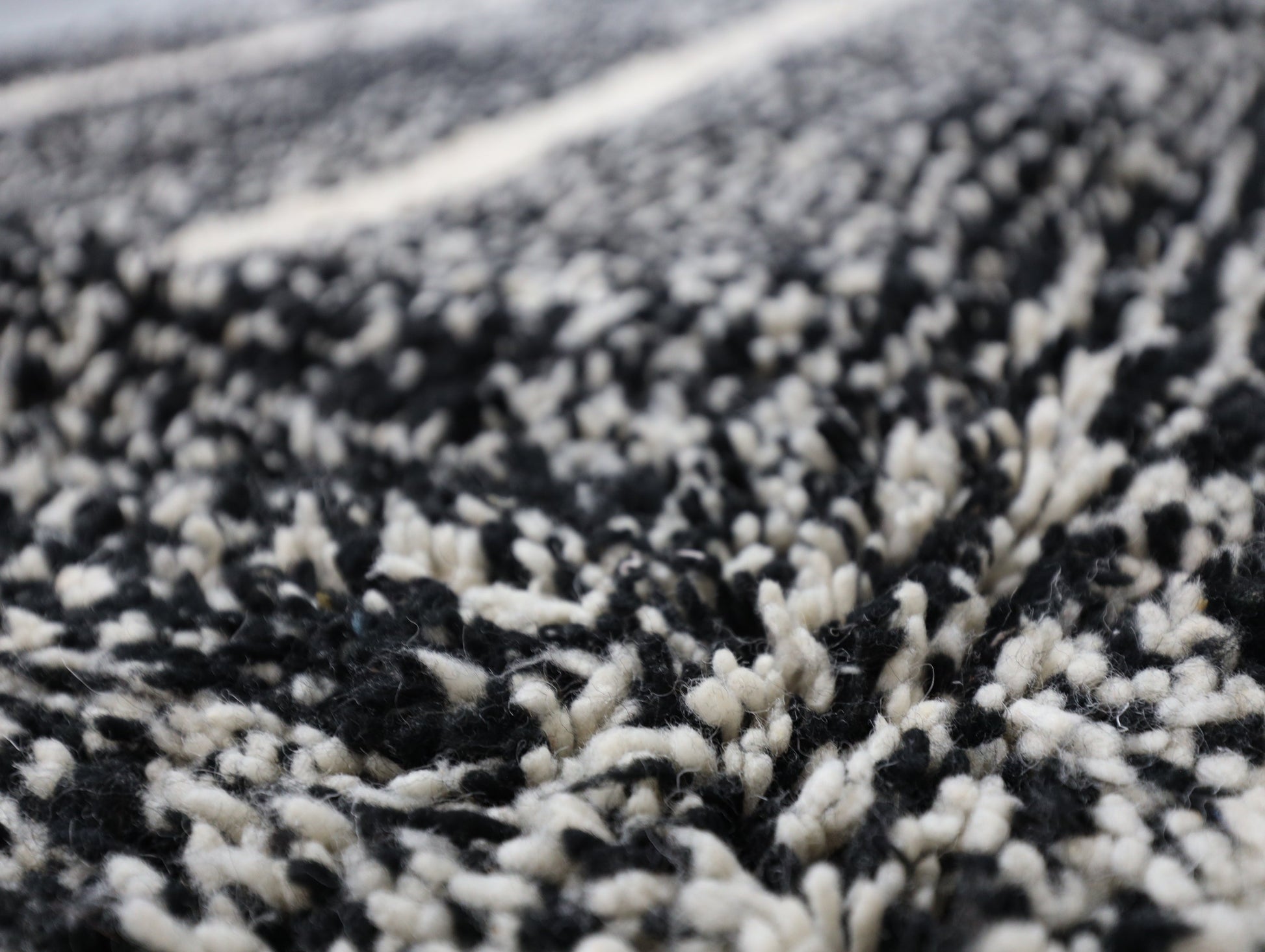 Sourced locally, Moroccan wool produces a dense, sturdy pile that feels soft and fluffy underfoot. While a touch of shedding is natural, it's a small price to pay for the cherished wild, tousled texture of the high pile—a comfort beloved for its durability, longevity, and the soft embrace it offers with every step.