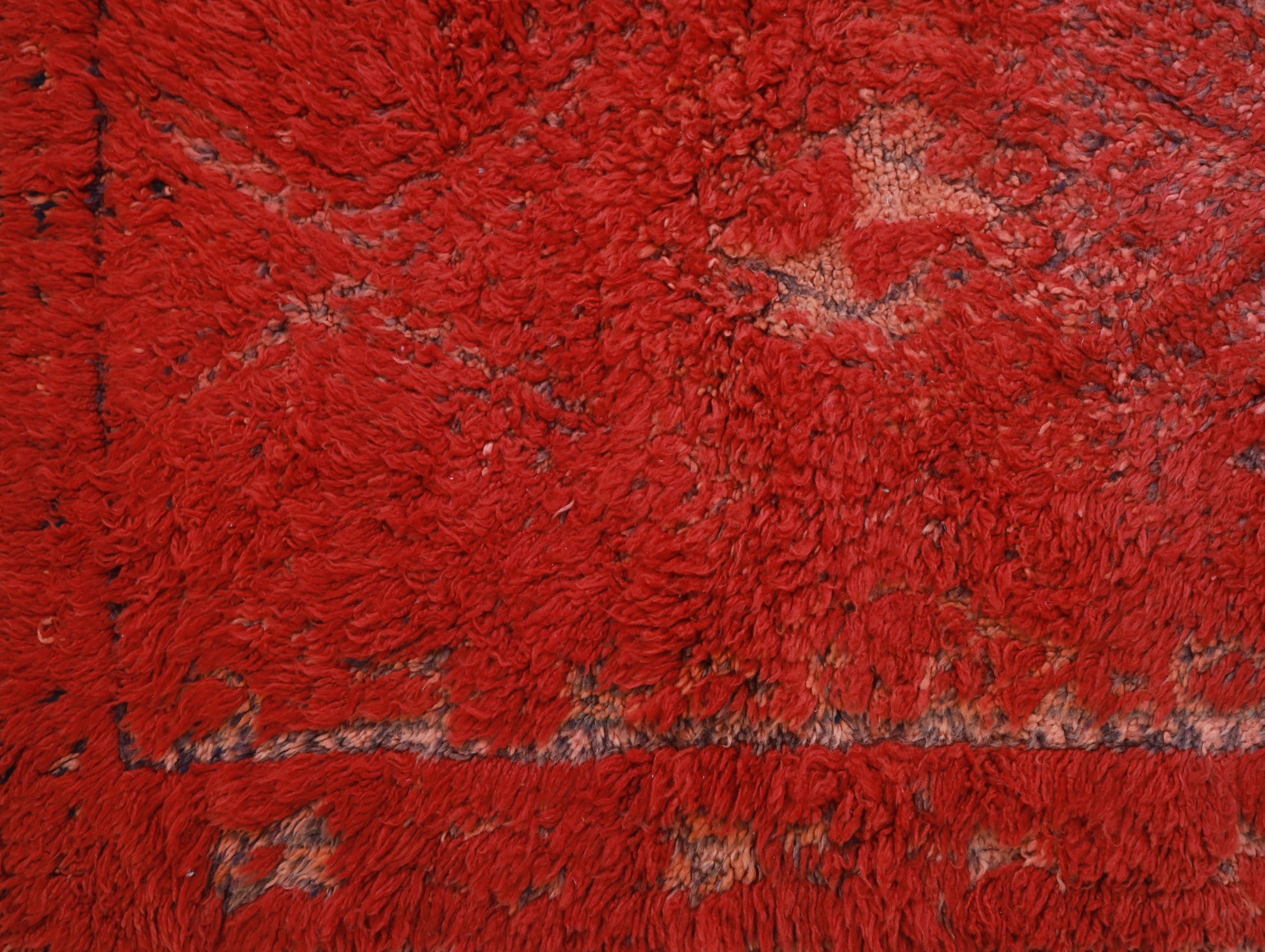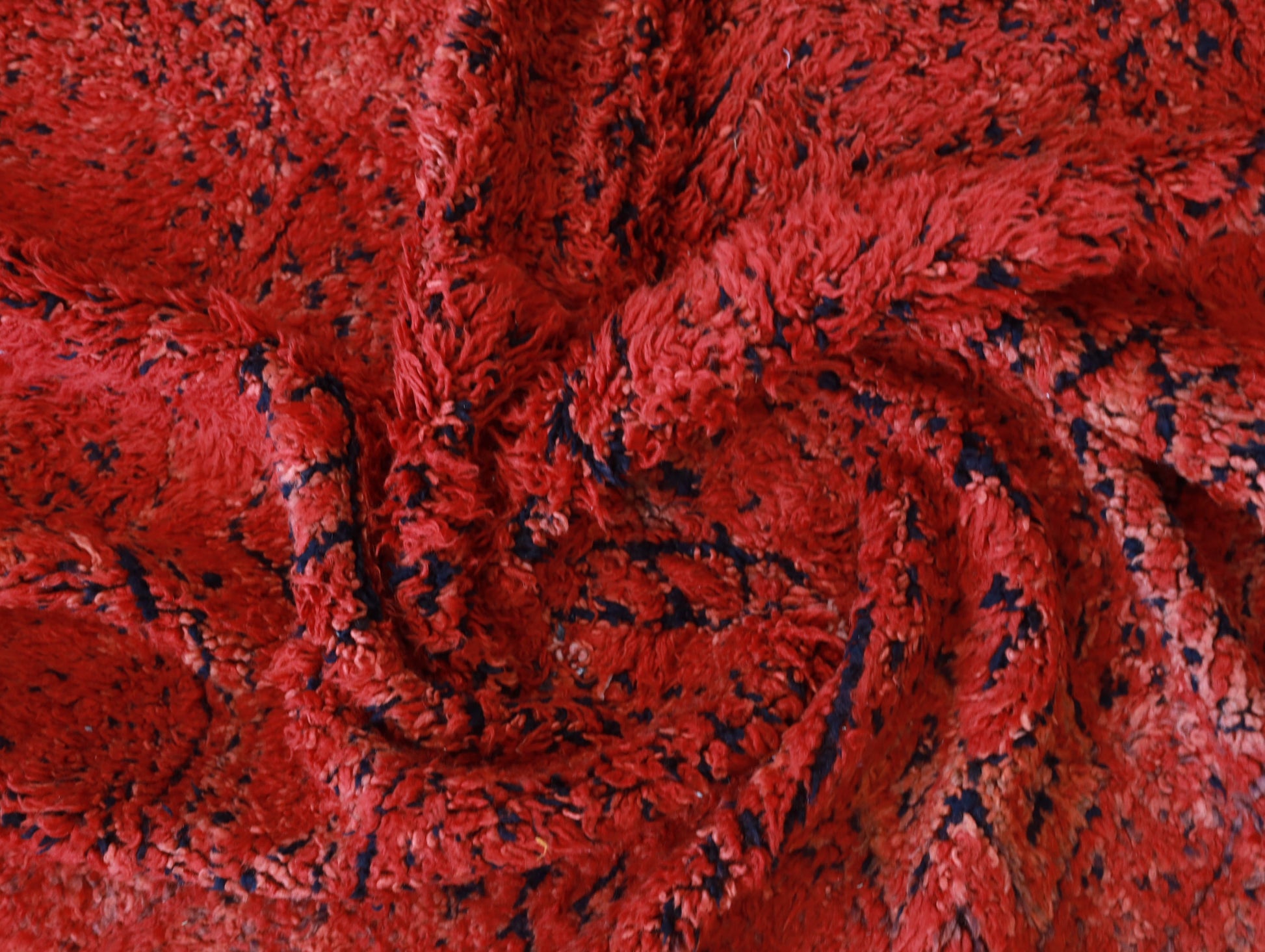 Wool, a sacred material for the Amazigh (Berber) people, forms the cornerstone of Moroccan rug design. Durable, long-lasting, and soft underfoot, wool is both functional and comfortable. In this piece, the wool pile is expertly knotted onto a wool foundation, adding substance and allowing it to gracefully embrace the floor.