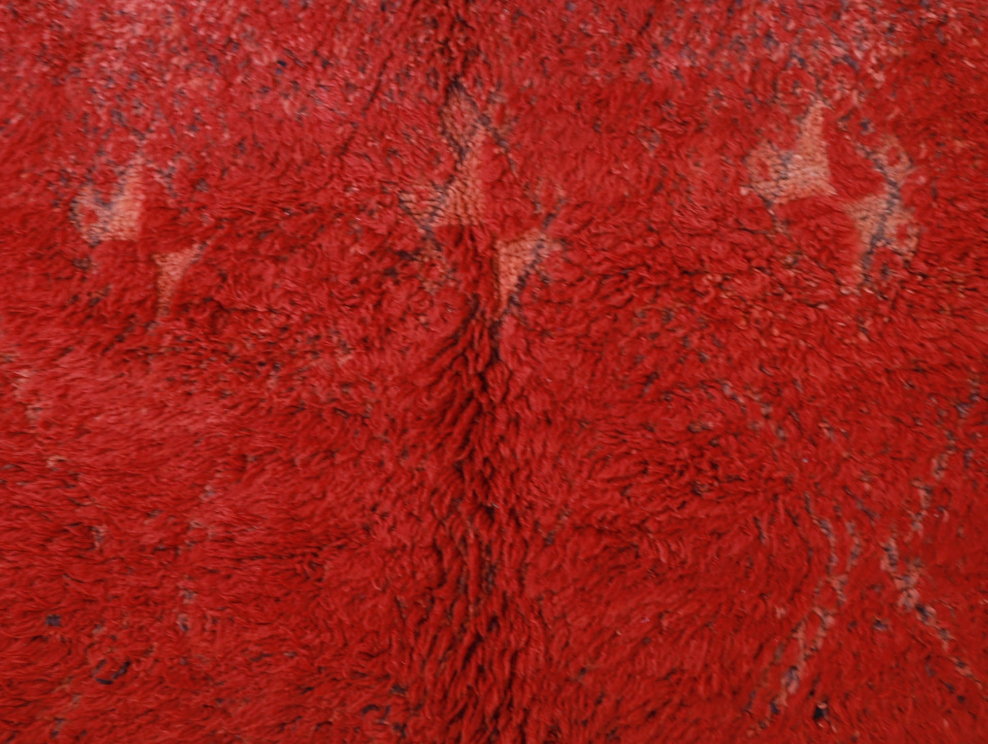 Originating in the Holy town of Boujad, these rugs, woven by diverse tribes, exhibit a wide spectrum of color, composition, and weave. Described as surreal, mystic, and mesmerizing, Boujad rugs transport us to a world beyond reality. Their construction, with twice as many horizontal as vertical knots, renders them floppy and easy to move.