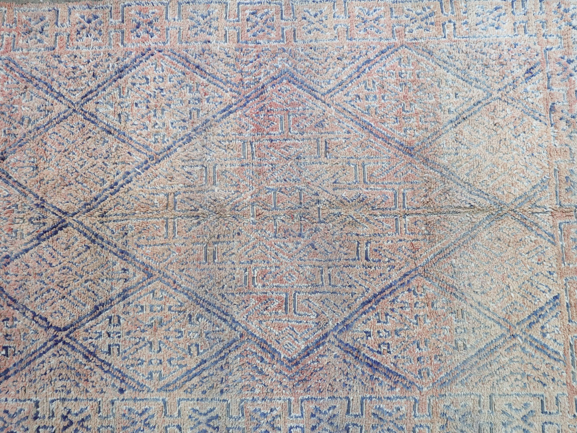 A truly unique vintage rug, meticulously hand-knotted by the Zemmour tribes from Morocco's Middle Atlas range.