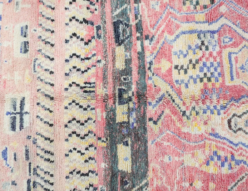 A singular moroccan rug, meticulously woven in the small city of Boujaad in Morocco's Chaouia-Ouardigha region.