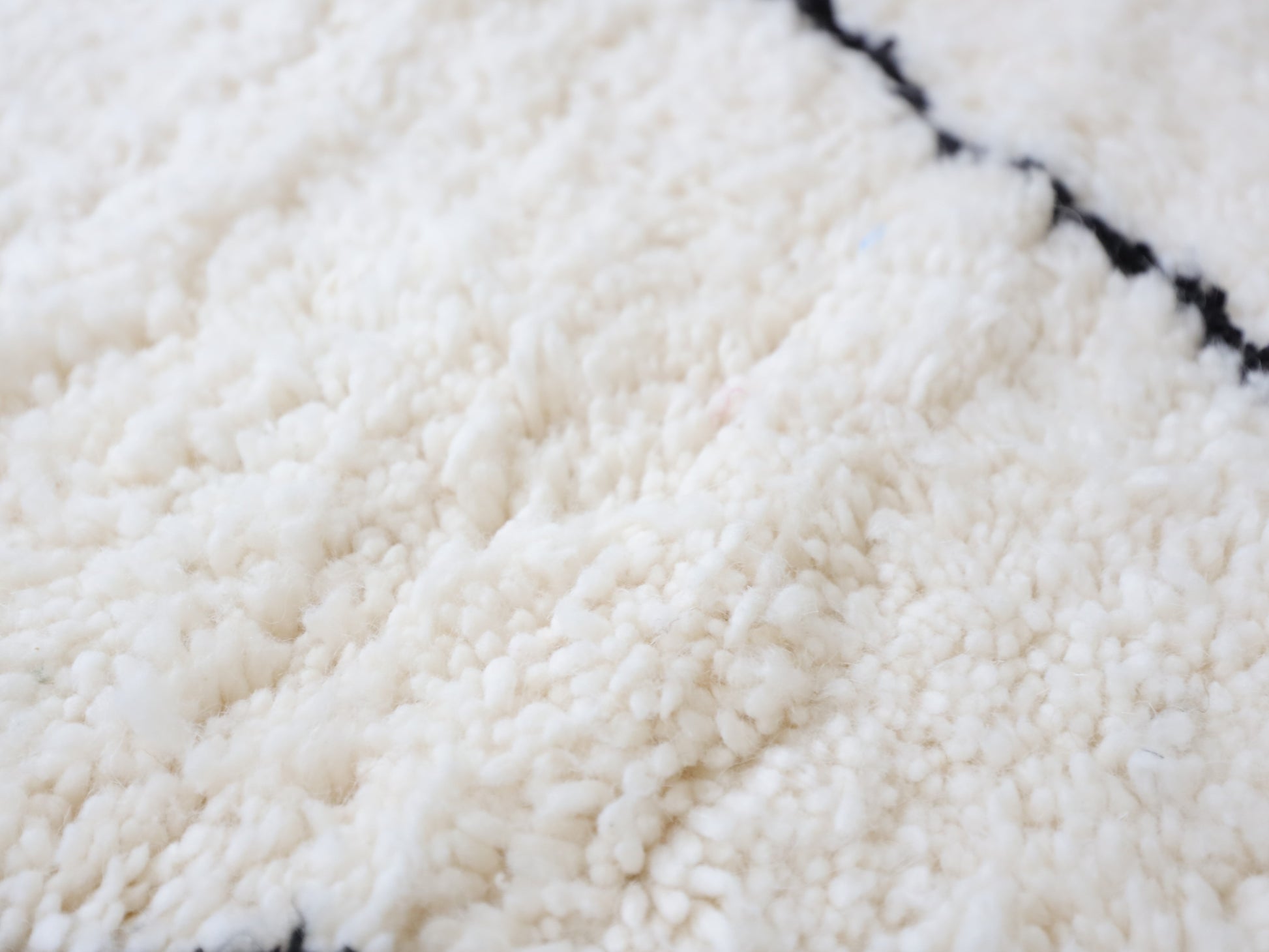 Sourced locally, Moroccan wool produces a dense, sturdy pile that feels soft and fluffy underfoot. While a touch of shedding is natural, it's a small price to pay for the cherished wild, tousled texture of the high pile—a comfort beloved for its durability, longevity, and the soft embrace it offers with every step.