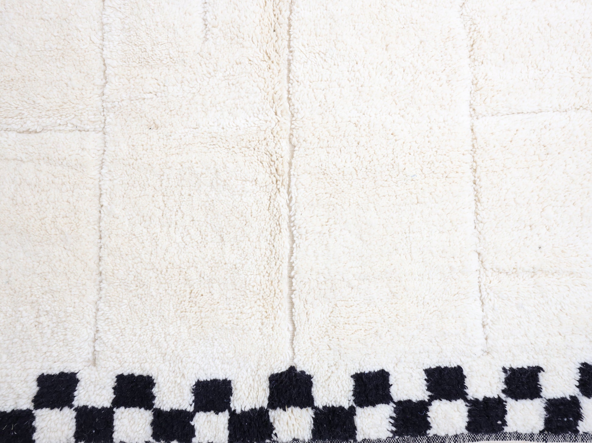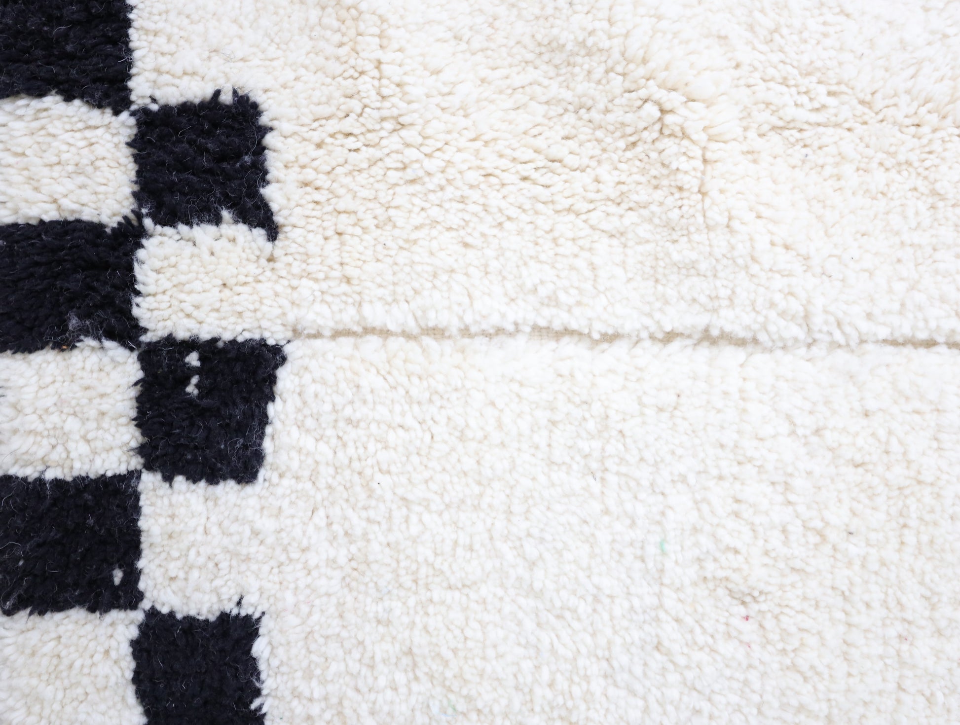 Wool, a sacred material for the Amazigh (Berber) people, forms the cornerstone of Moroccan rug design. Durable, long-lasting, and soft underfoot, wool is both functional and comfortable. In this piece, the wool pile is expertly knotted onto a wool foundation, adding substance and allowing it to gracefully embrace the floor.