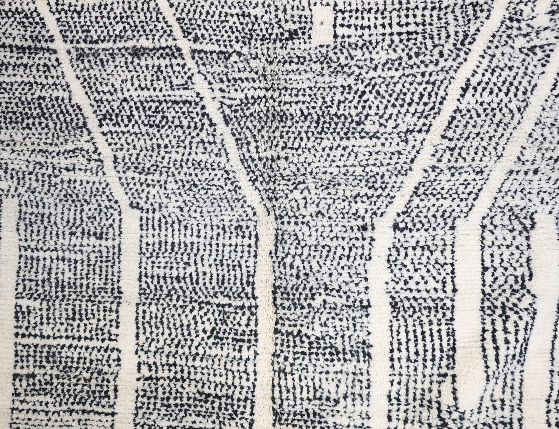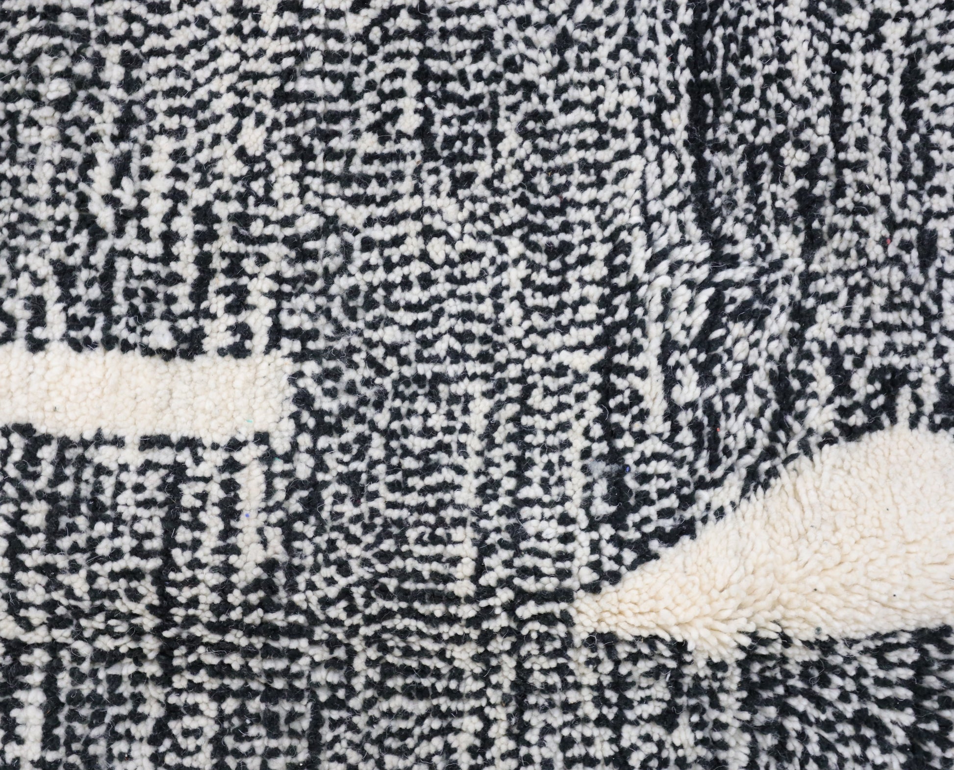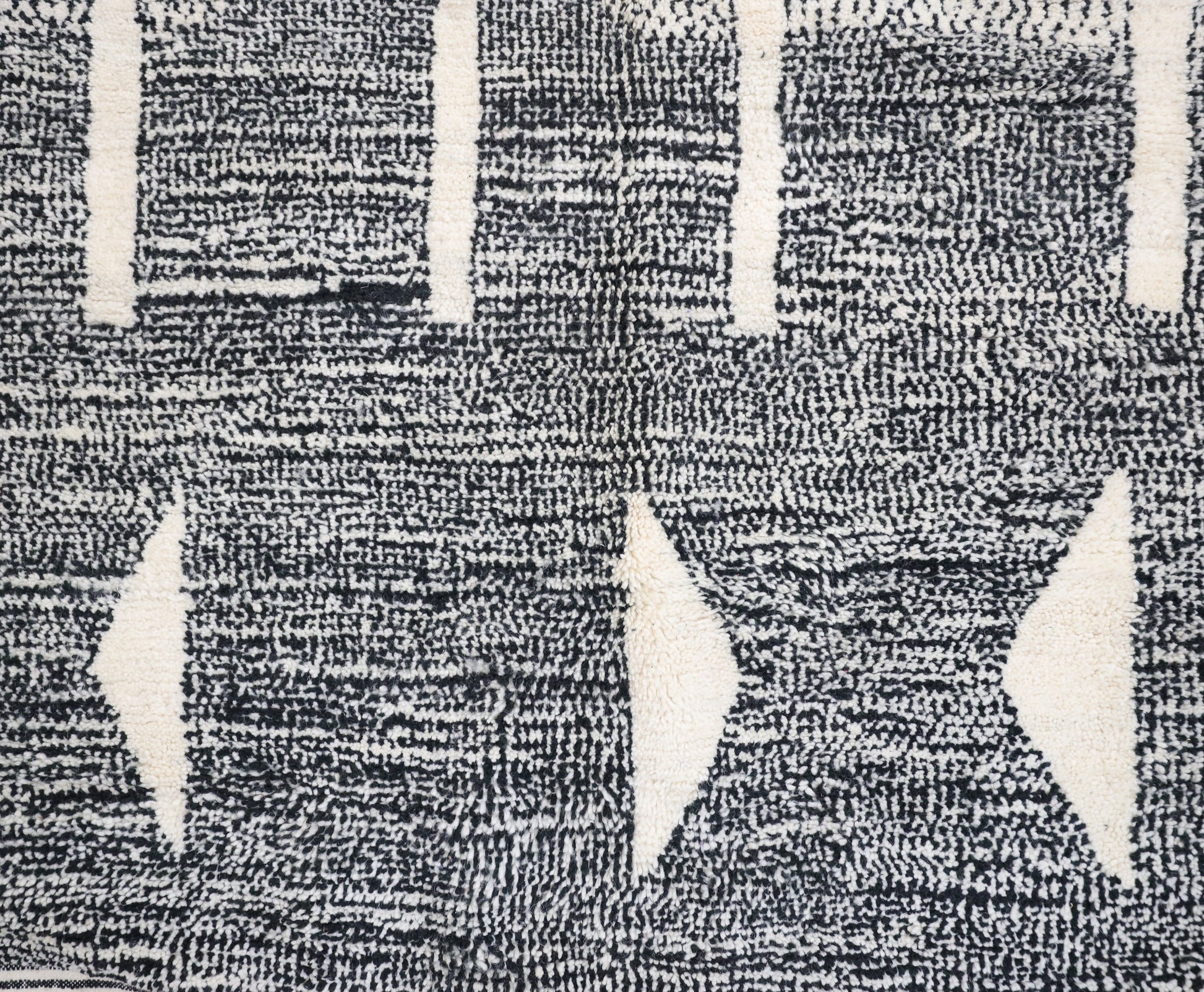 Wool, a sacred material for the Amazigh (Berber) people, forms the cornerstone of Moroccan rug design. Durable, long-lasting, and soft underfoot, wool is both functional and comfortable. In this piece, the wool pile is expertly knotted onto a wool foundation, adding substance and allowing it to gracefully embrace the floor.