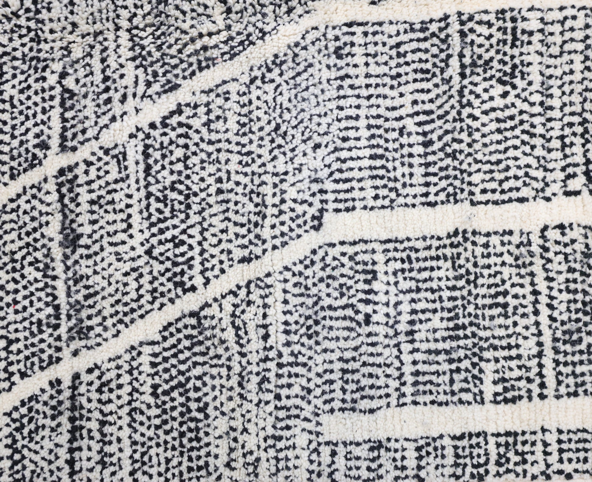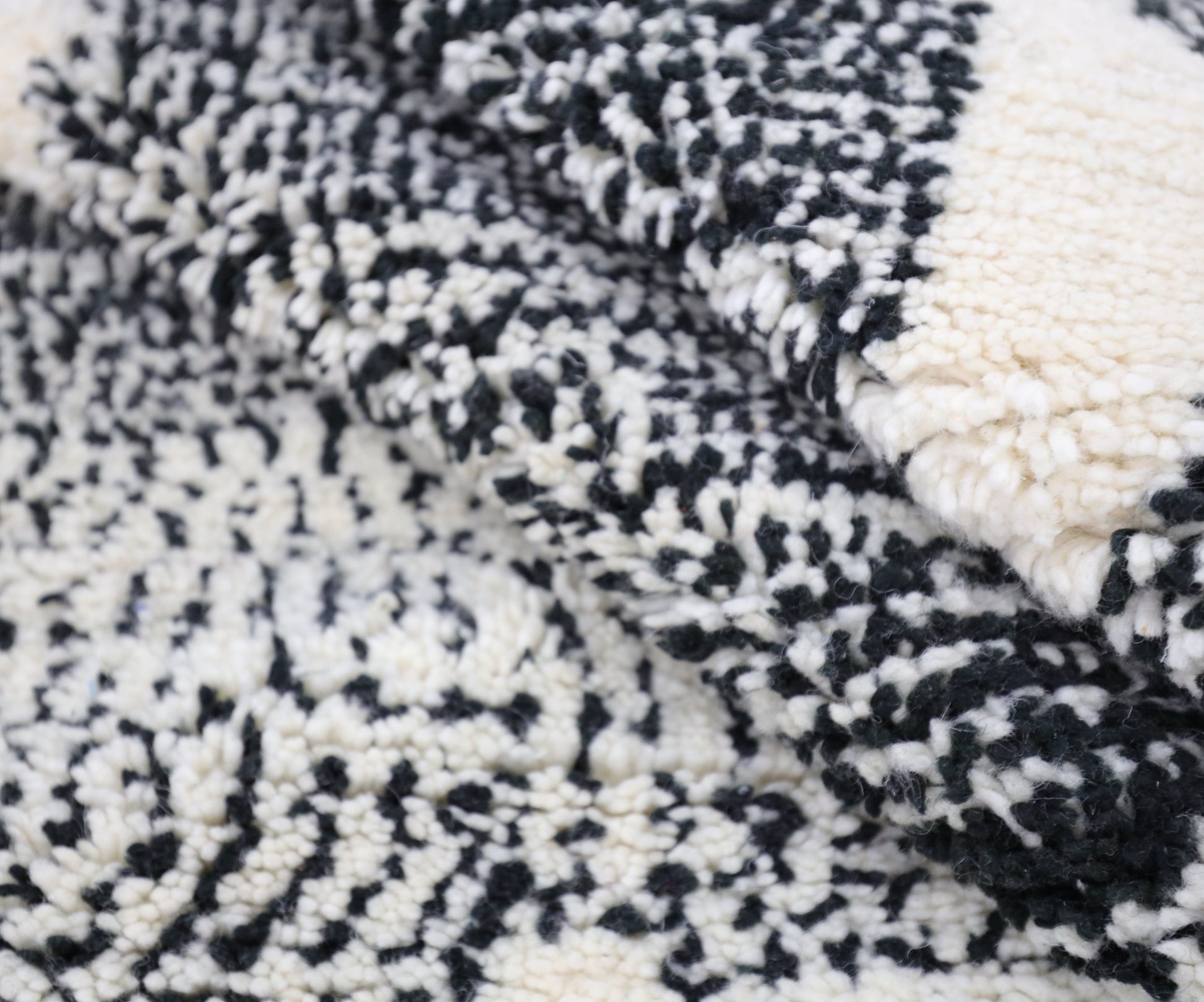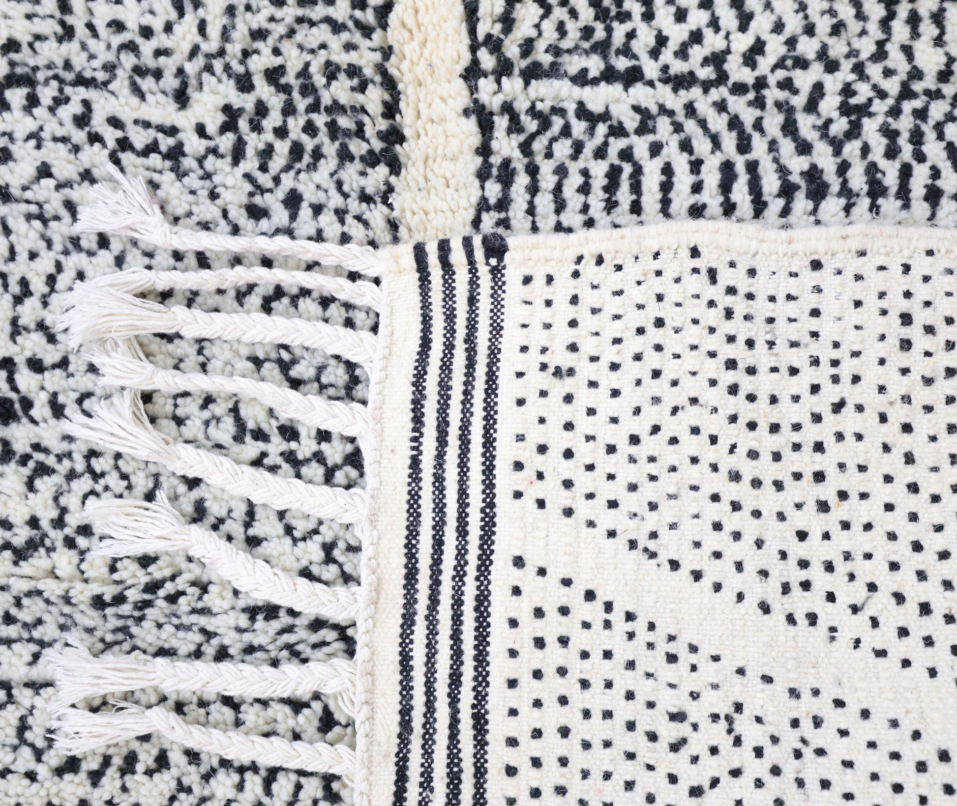 Wool, a sacred material for the Amazigh (Berber) people, forms the cornerstone of Moroccan rug design. Durable, long-lasting, and soft underfoot, wool is both functional and comfortable. In this piece, the wool pile is expertly knotted onto a wool foundation, adding substance and allowing it to gracefully embrace the floor.