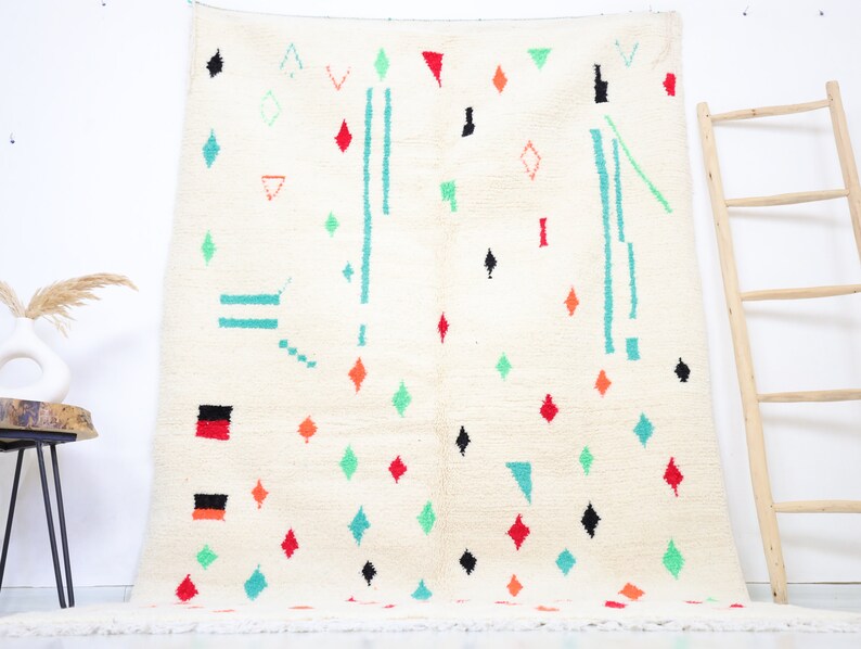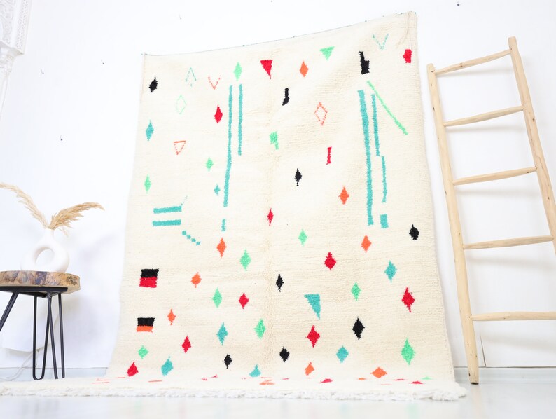 Azilal rugs boast abstract, painterly designs reminiscent of rugs from Ourika. What sets them apart is a vibrant color palette, achieved through the incorporation of cotton alongside wool.