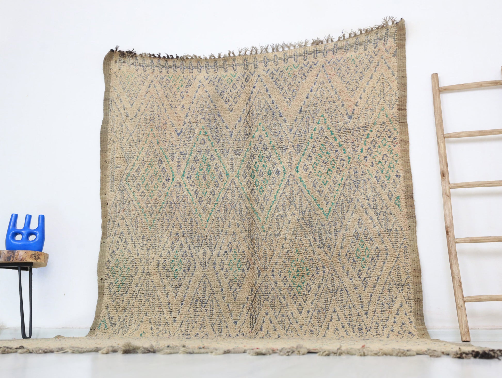 A truly unique vintage rug, meticulously hand-knotted by the Zemmour tribes from Morocco's Middle Atlas range.