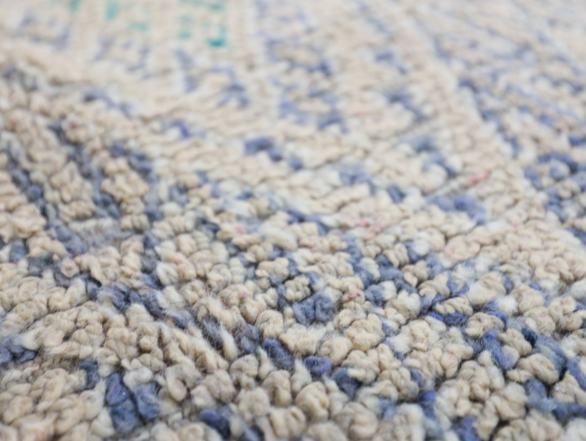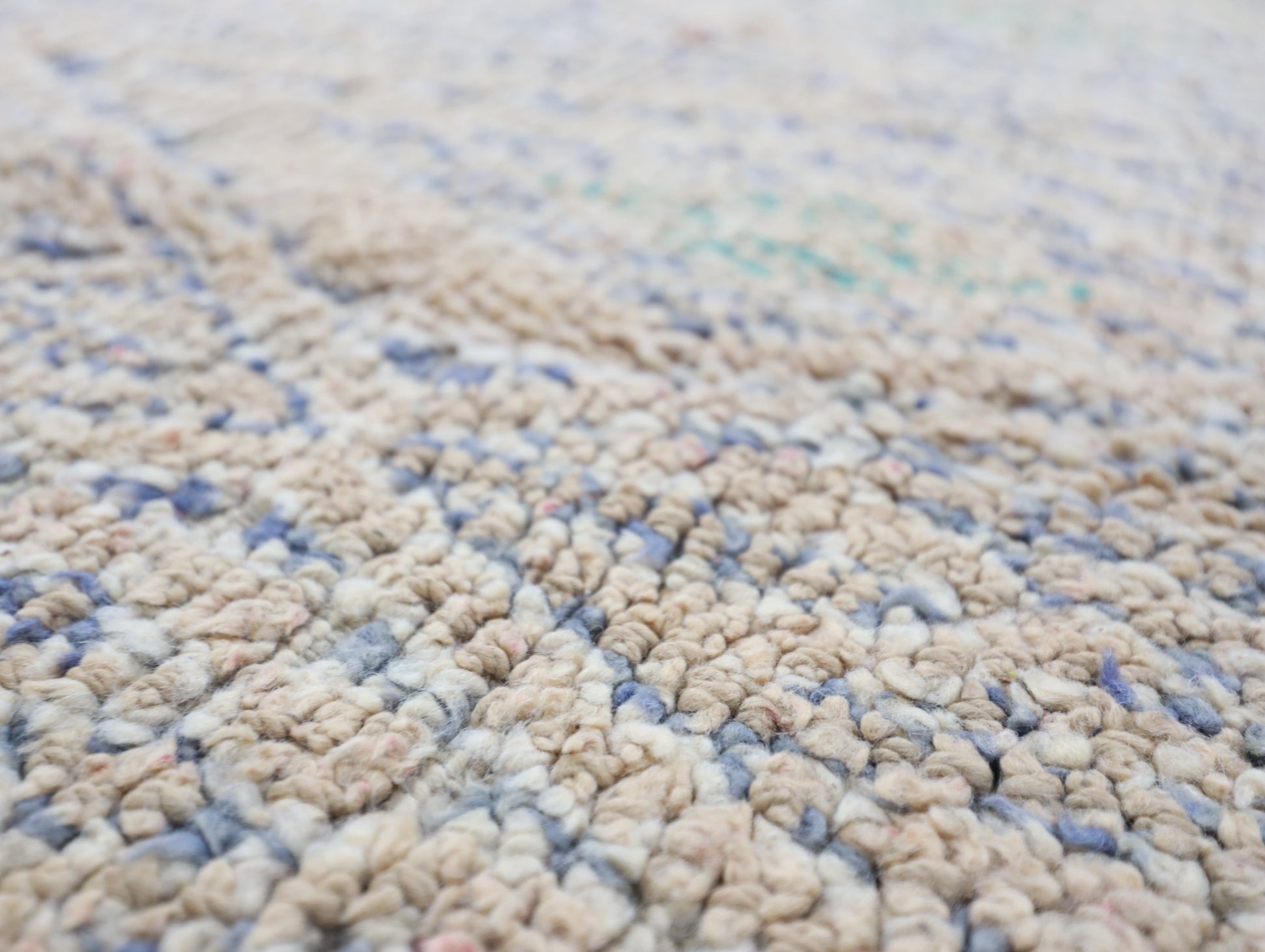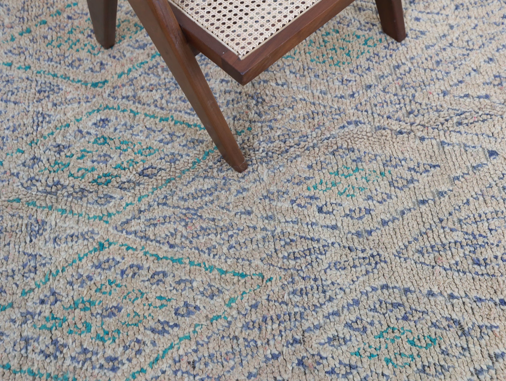 Wool, a sacred material for the Amazigh (Berber) people, forms the cornerstone of Moroccan rug design. Durable, long-lasting, and soft underfoot, wool is both functional and comfortable. In this piece, the wool pile is expertly knotted onto a wool foundation, adding substance and allowing it to gracefully embrace the floor.