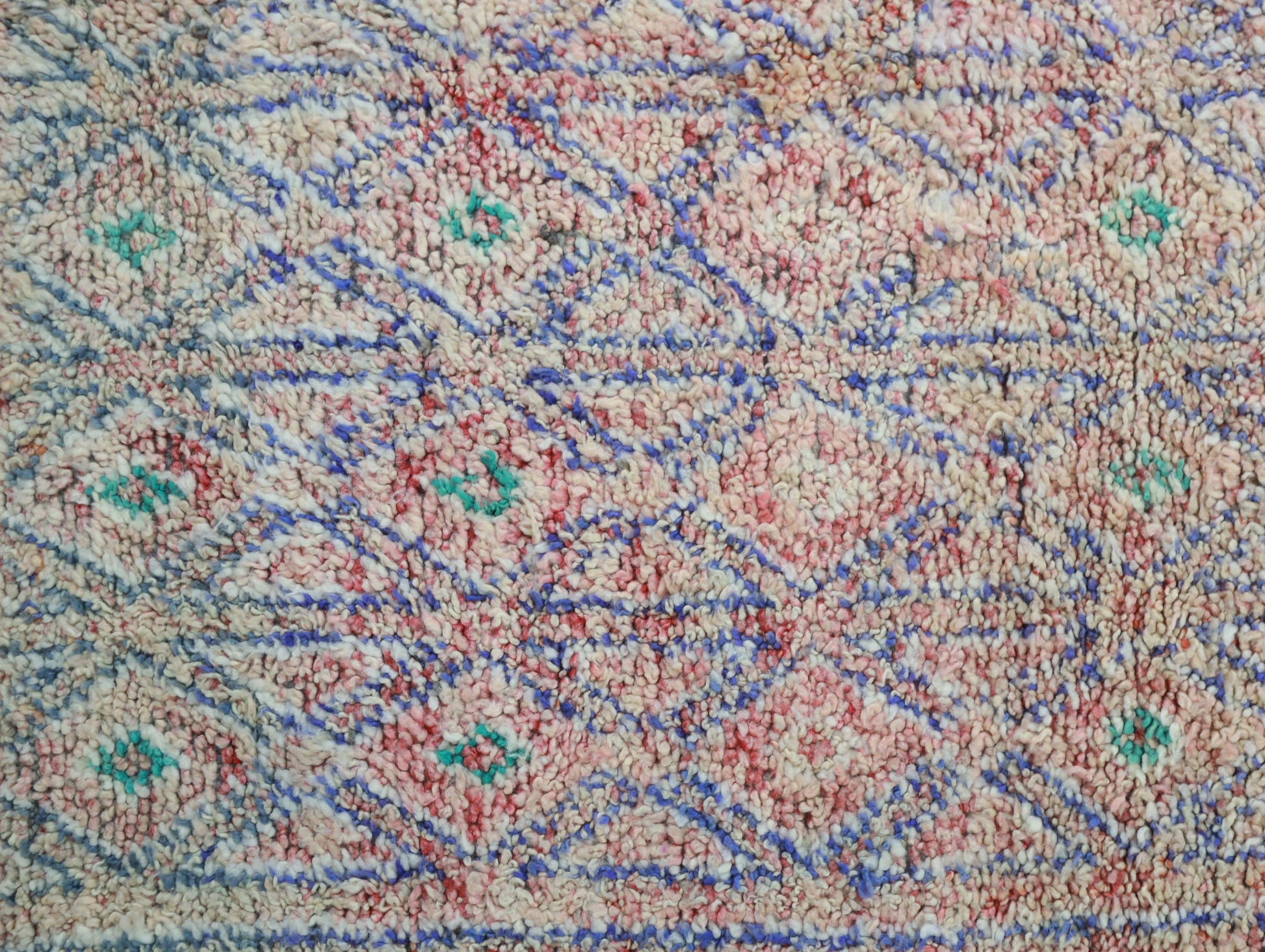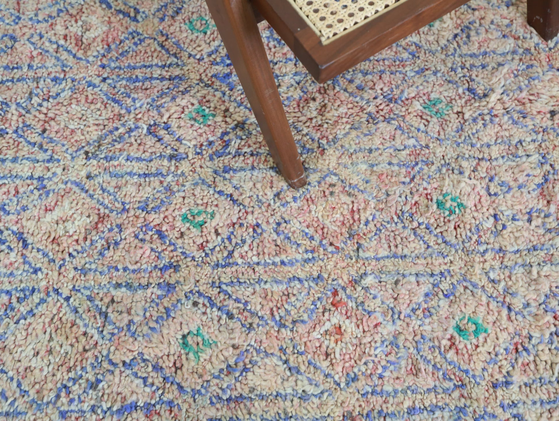 A truly unique vintage rug, meticulously hand-knotted by the Zemmour tribes from Morocco's Middle Atlas range.