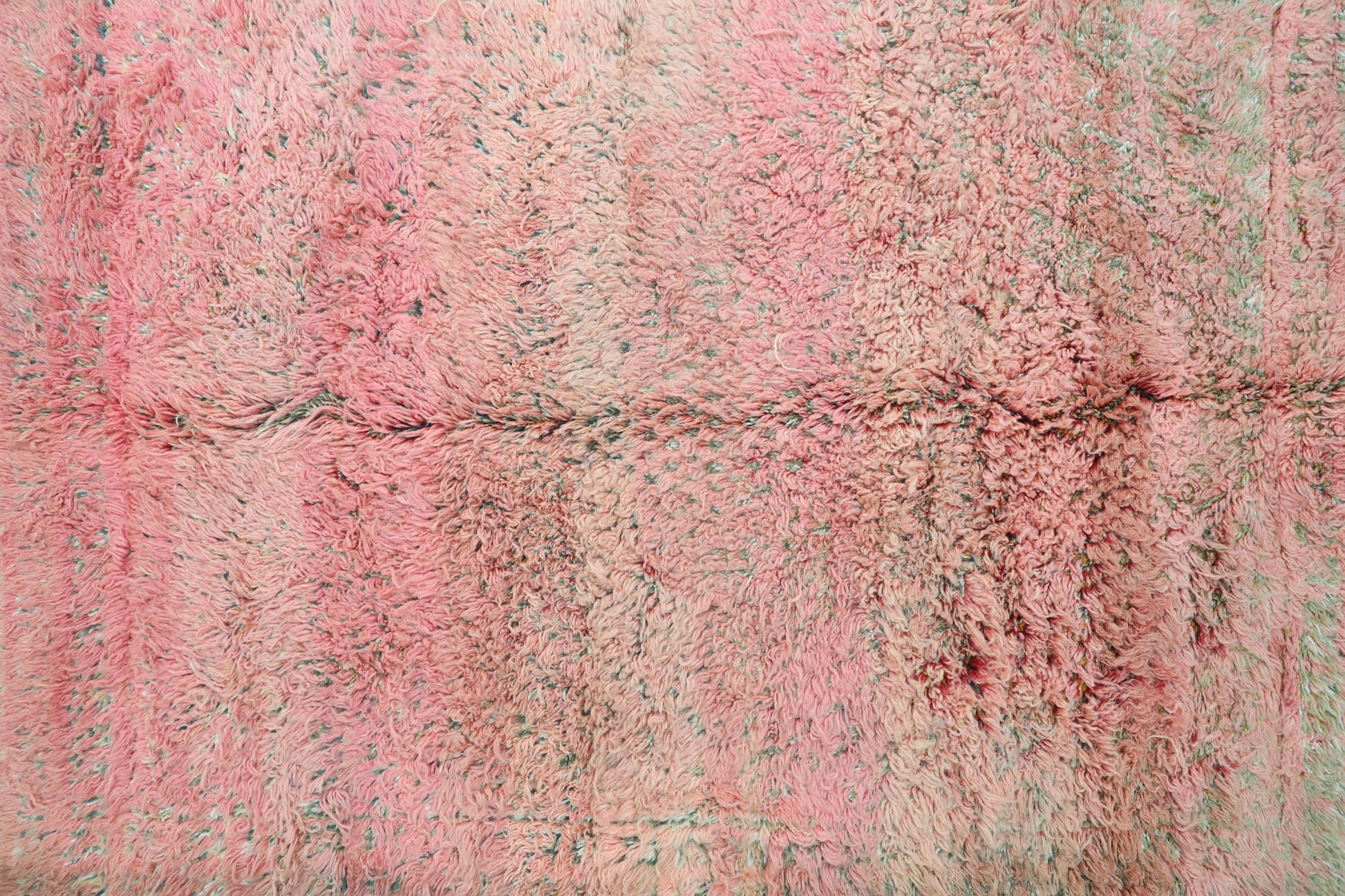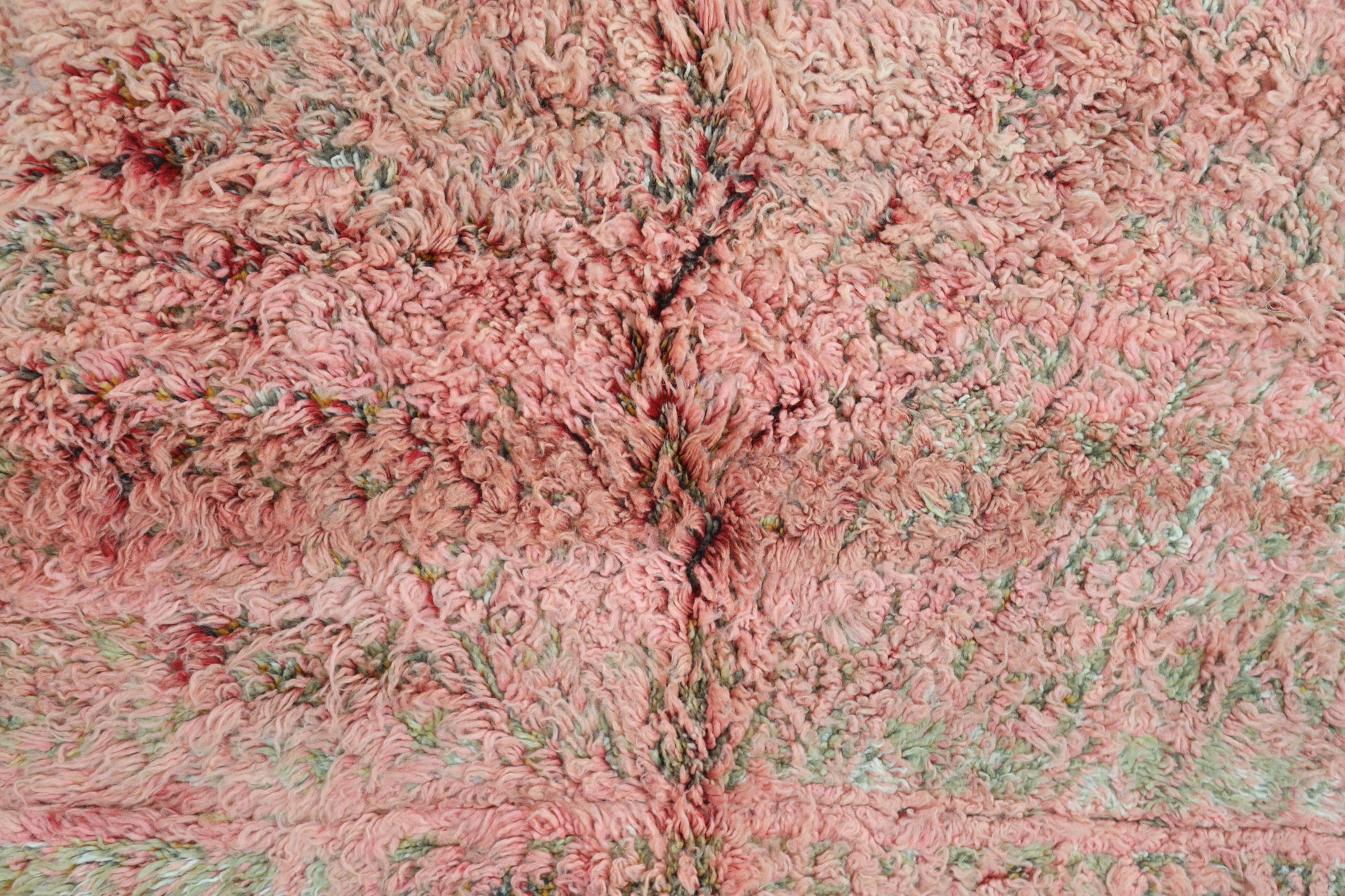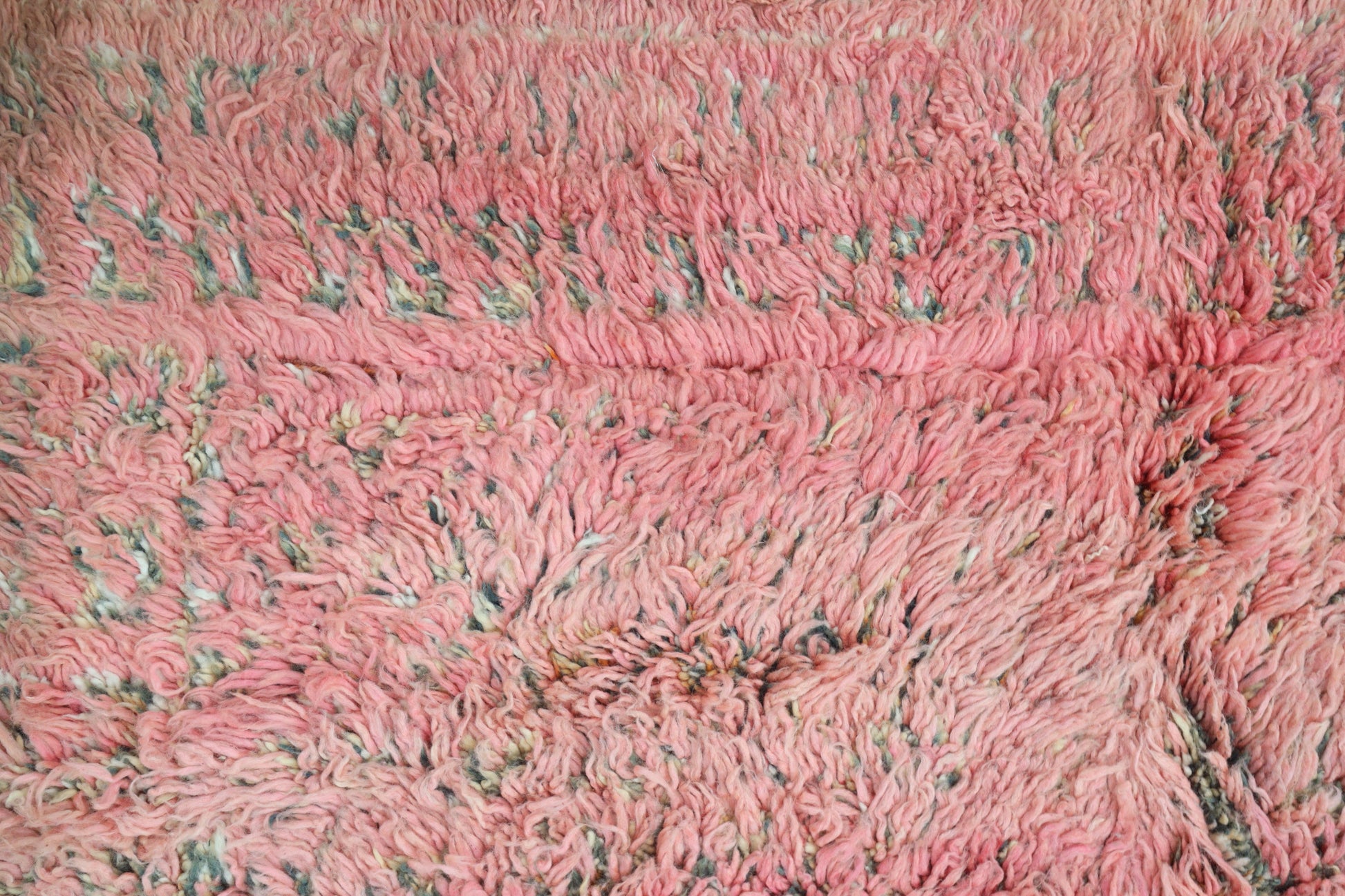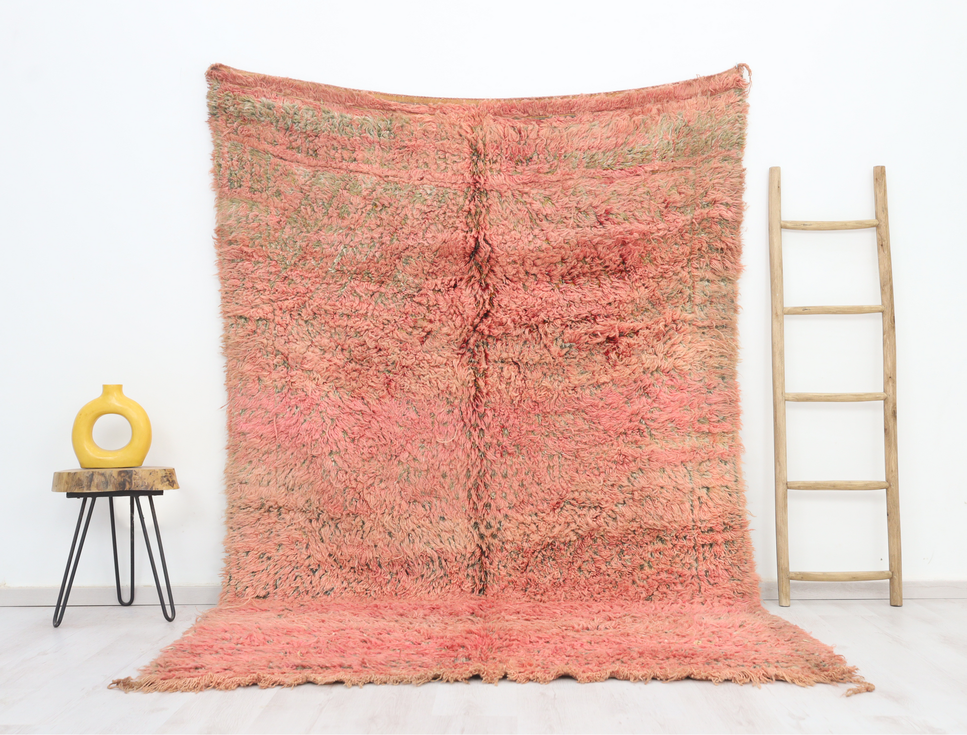 Wool, a sacred material for the Amazigh (Berber) people, forms the cornerstone of Moroccan rug design. Durable, long-lasting, and soft underfoot, wool is both functional and comfortable. In this piece, the wool pile is expertly knotted onto a wool foundation, adding substance and allowing it to gracefully embrace the floor.