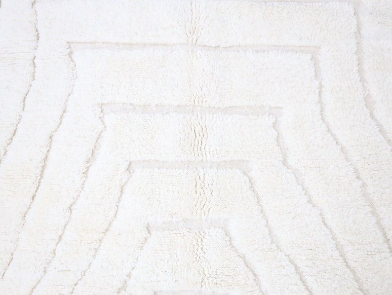 This unique rug, singular in its design, was intricately hand-knotted by the Beni Ourain tribes nestled in Morocco's Middle Atlas mountains.