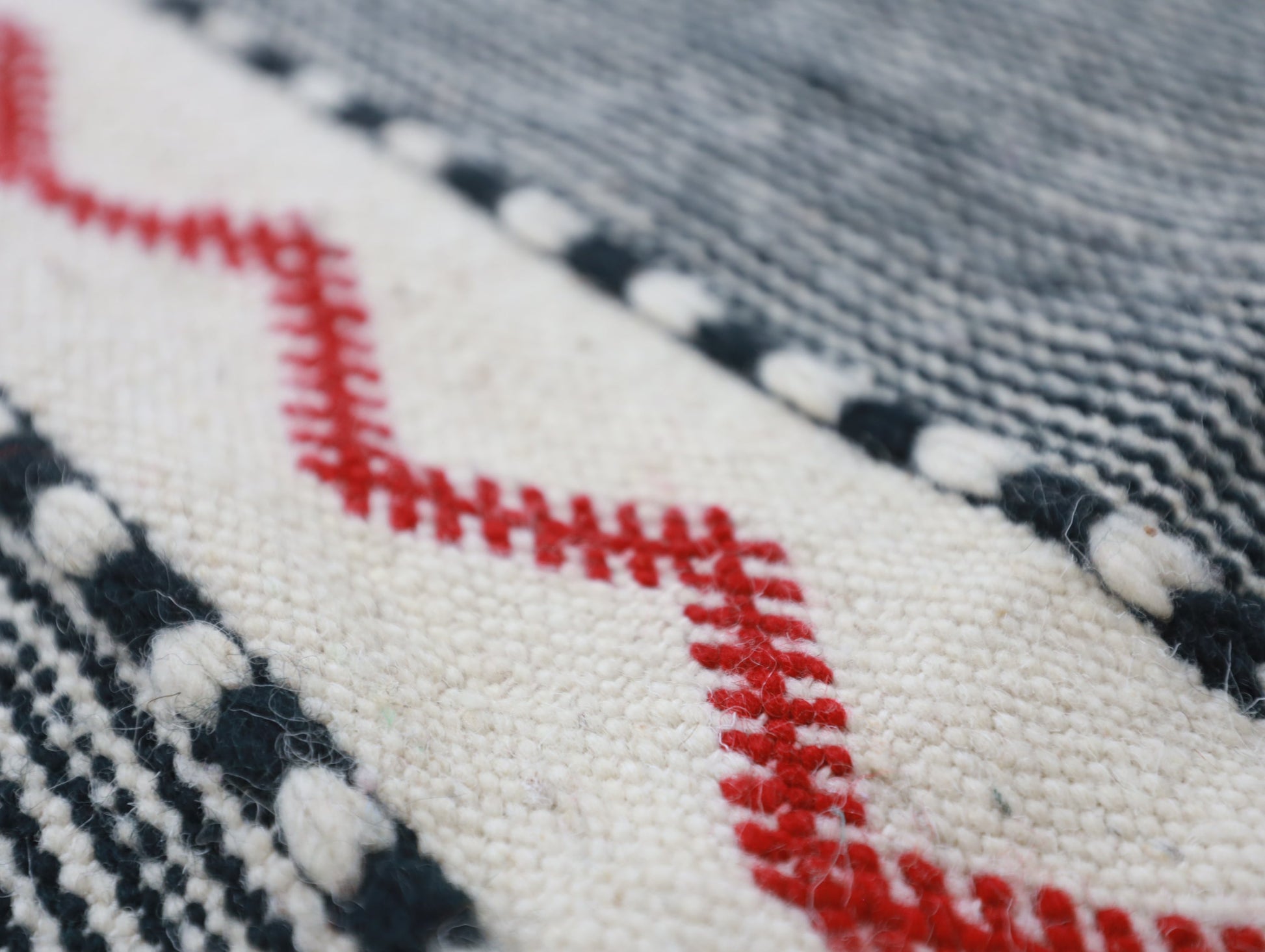 A singular moroccan rug, meticulously woven in the small city of Boujaad in Morocco's Chaouia-Ouardigha region.