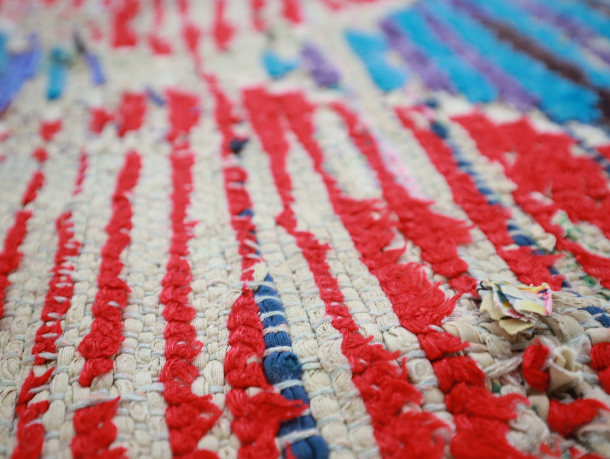 An unparalleled vintage masterpiece, carefully crafted by Berber Tribes in the Boucherouite style using upcycled textiles.