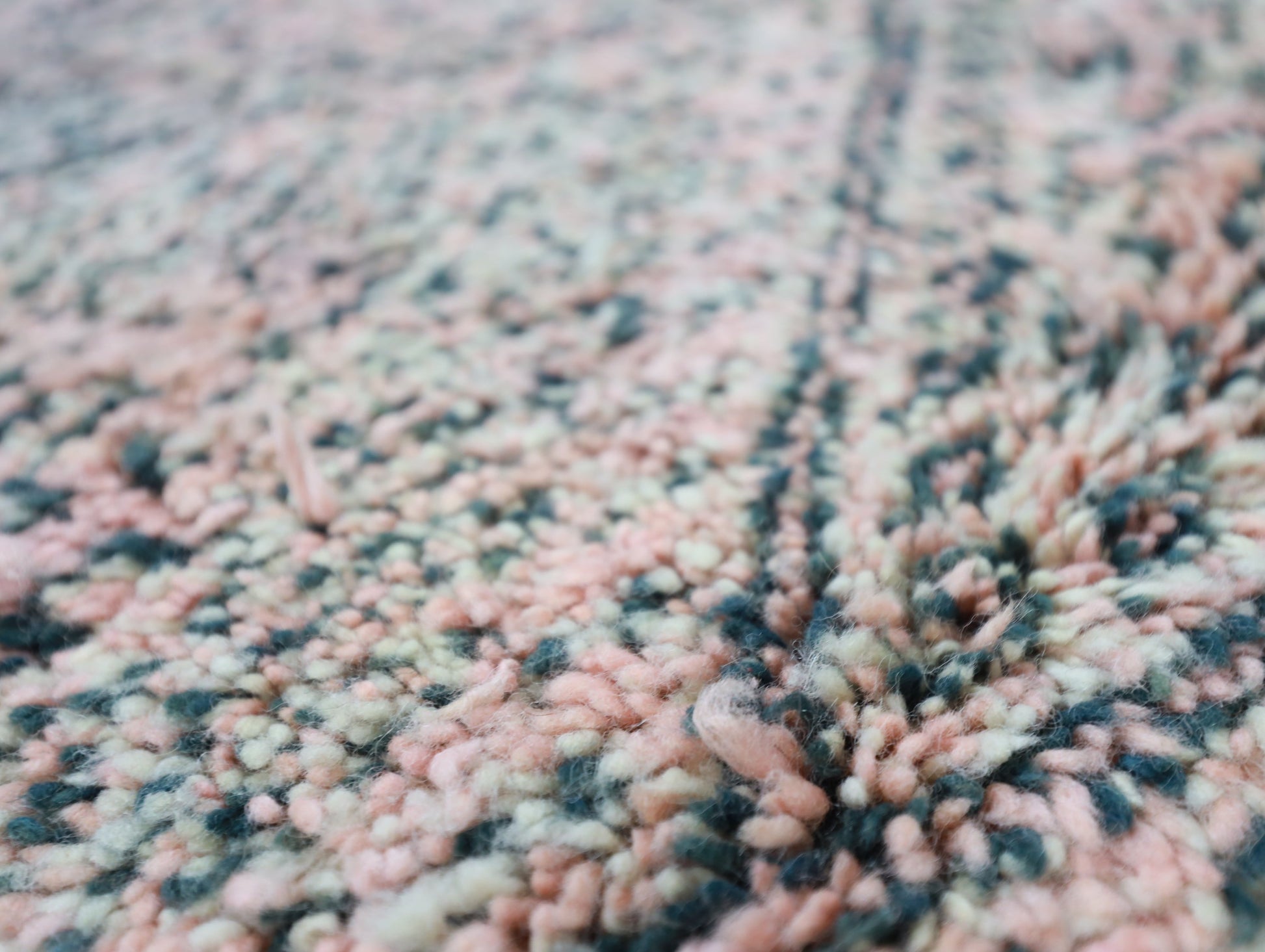 Wool, a sacred material for the Amazigh (Berber) people, forms the cornerstone of Moroccan rug design. Durable, long-lasting, and soft underfoot, wool is both functional and comfortable. In this piece, the wool pile is expertly knotted onto a wool foundation, adding substance and allowing it to gracefully embrace the floor.