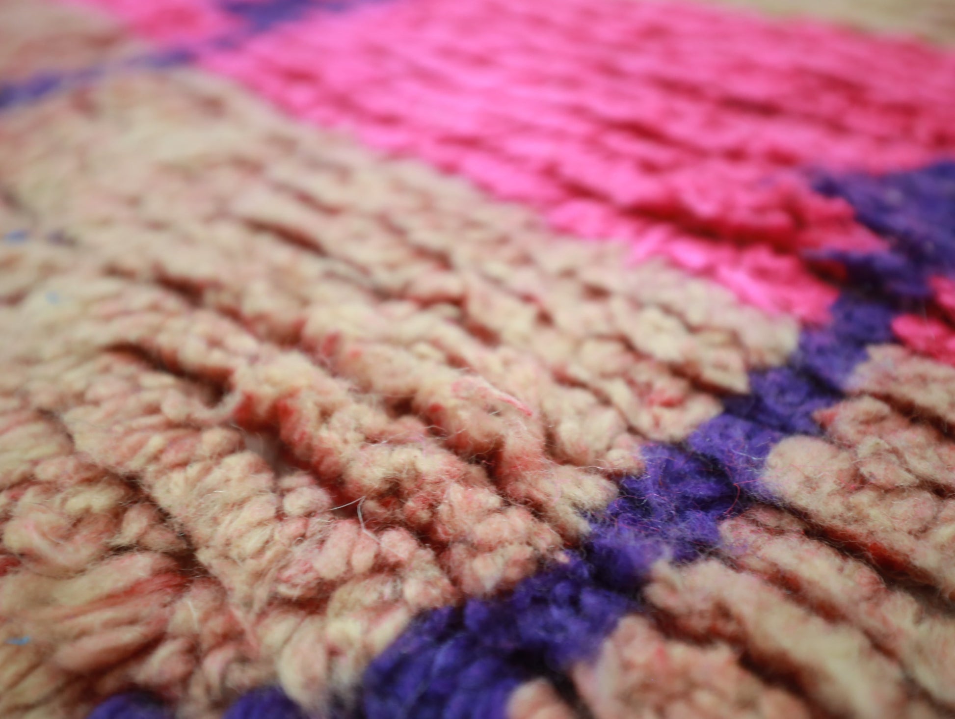 A singular moroccan rug, meticulously woven in the small city of Boujaad in Morocco's Chaouia-Ouardigha region.
