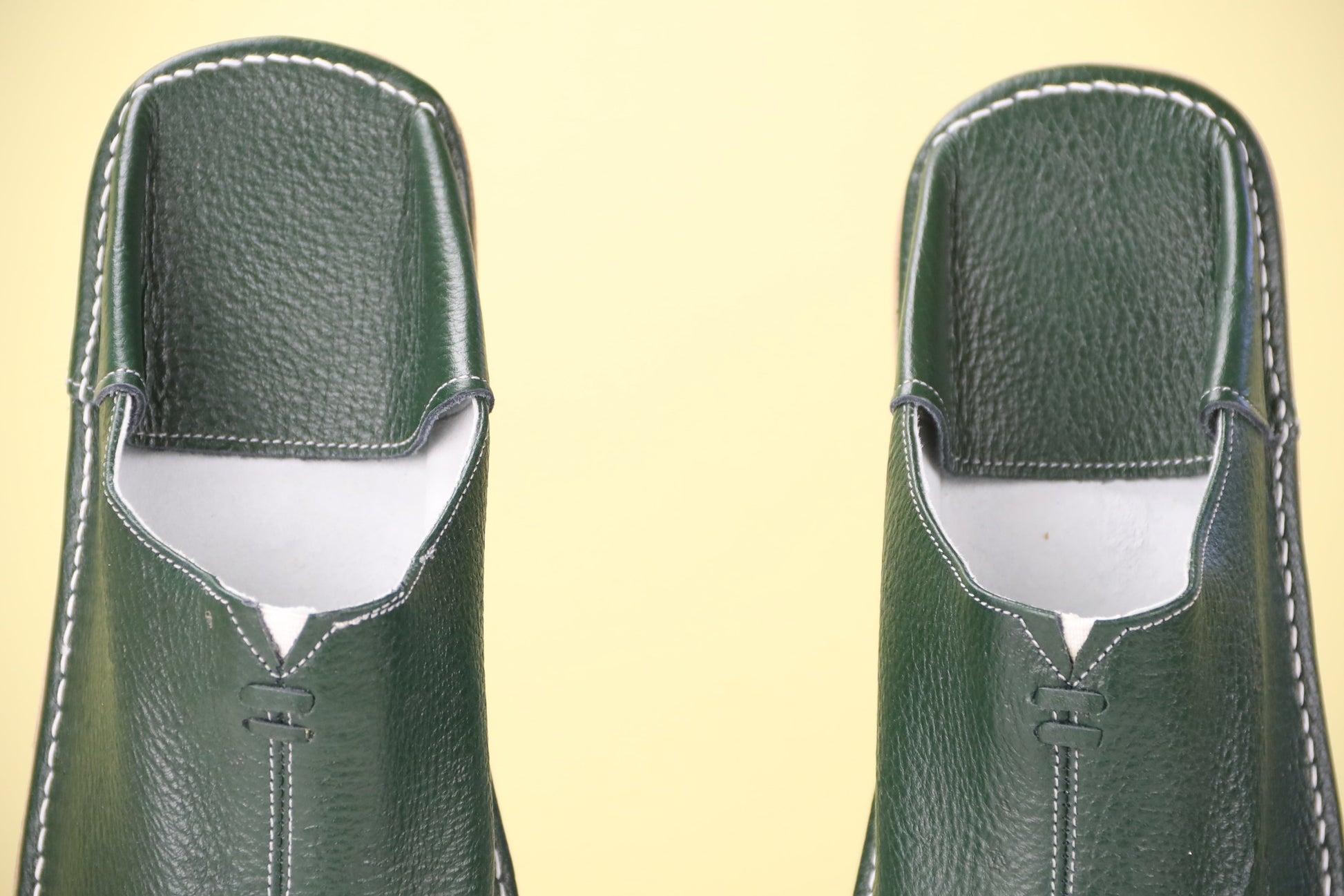 Crafted from soft leather with intricate embroidery, these iconic slippers blend traditional design with modern comfort for a touch of North African elegance.