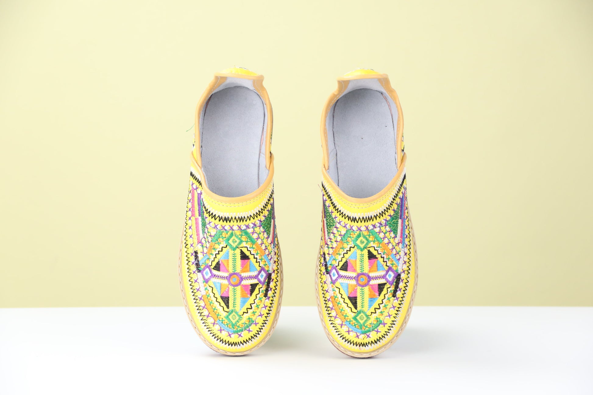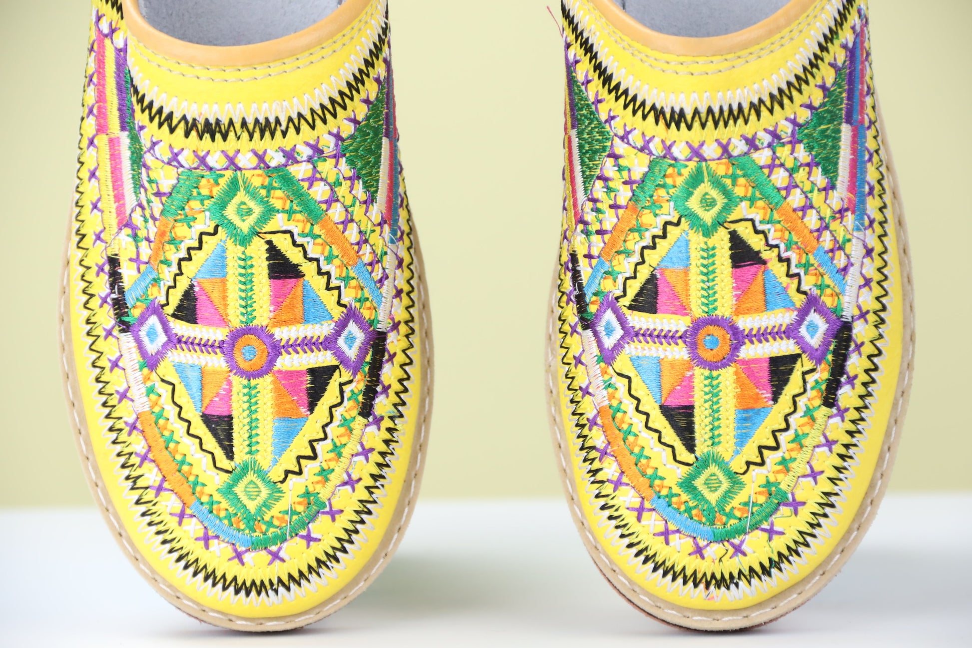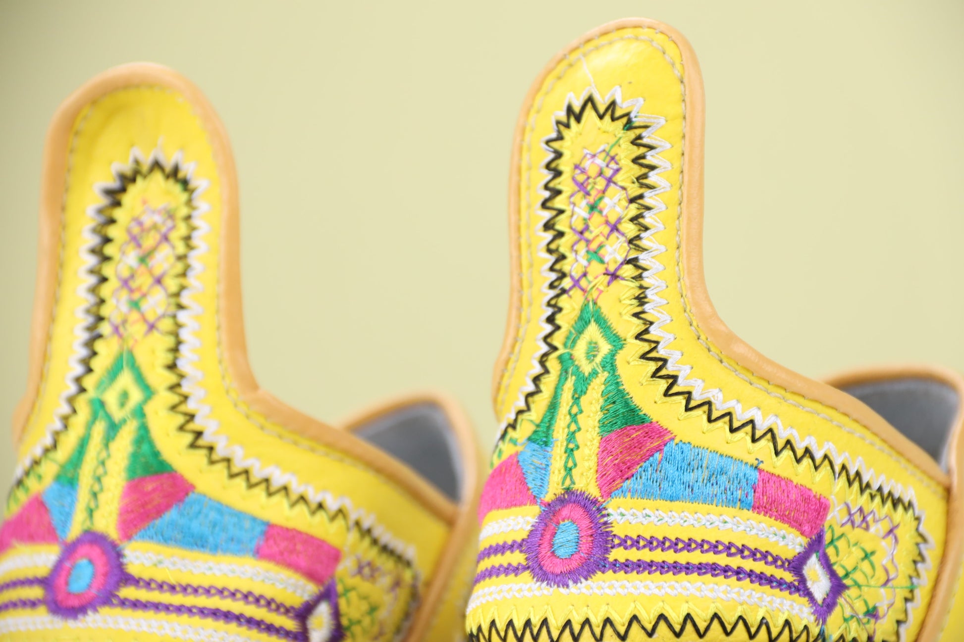 Crafted from soft leather with intricate embroidery, these iconic slippers blend traditional design with modern comfort for a touch of North African elegance.
