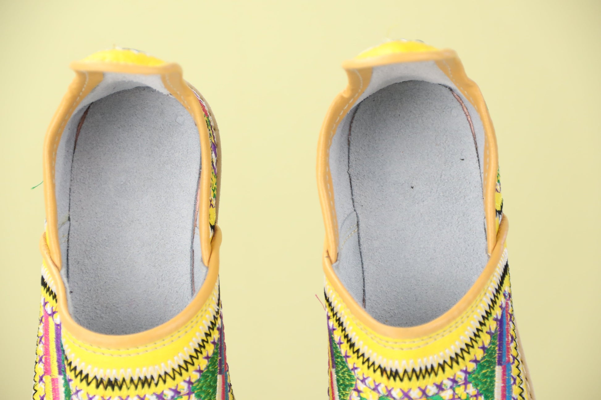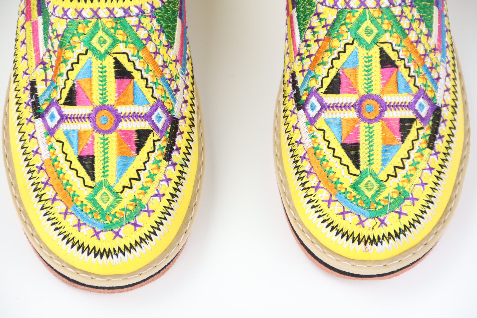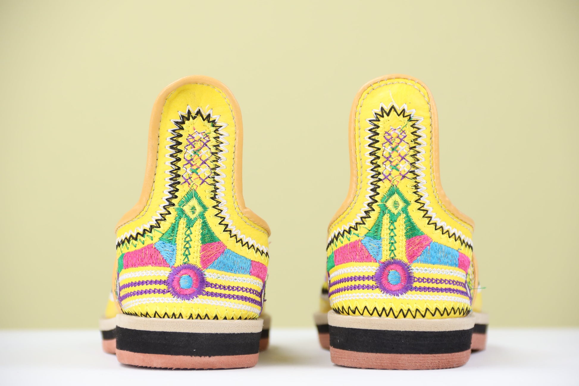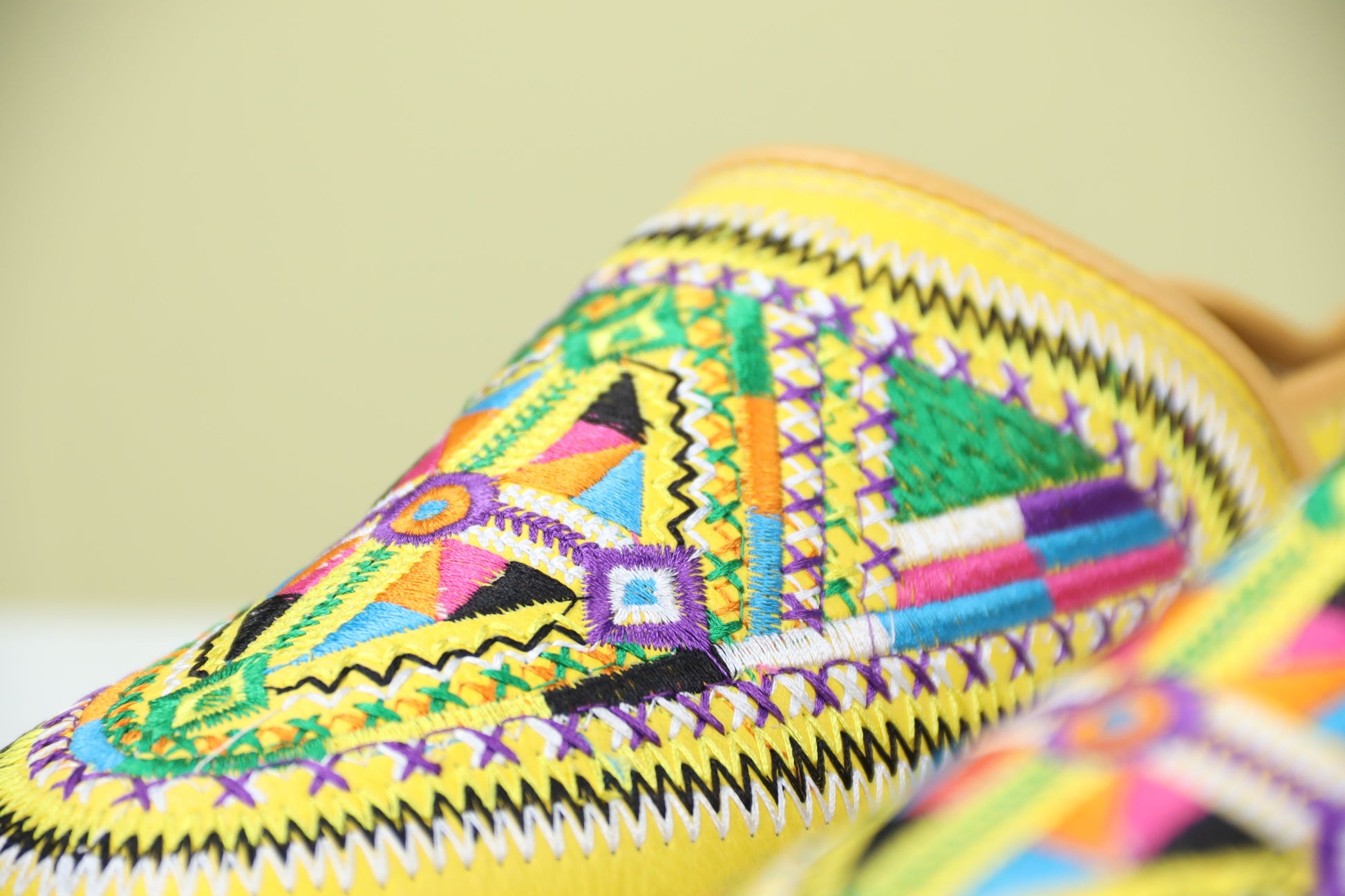 Crafted from soft leather with intricate embroidery, these iconic slippers blend traditional design with modern comfort for a touch of North African elegance.