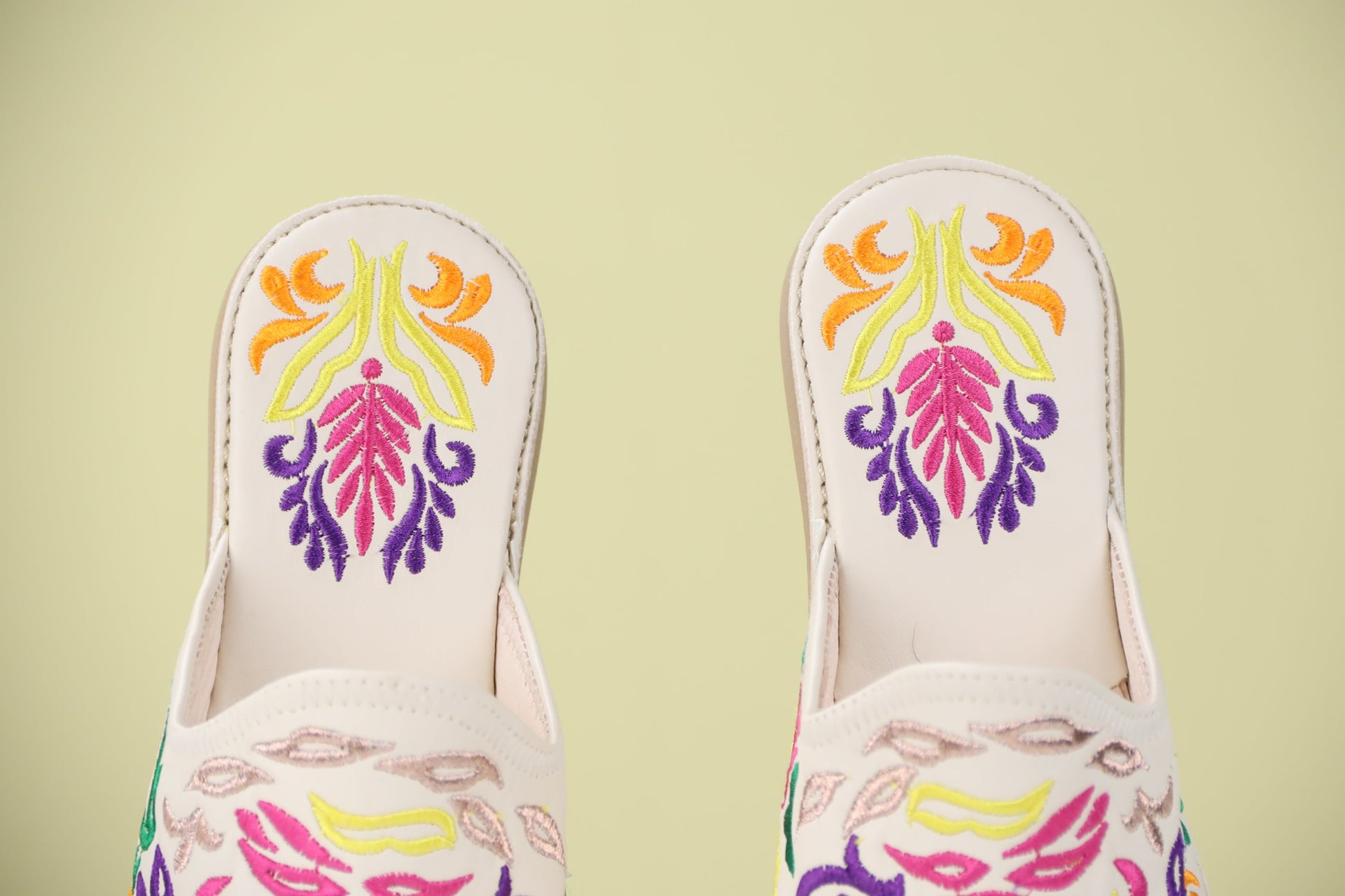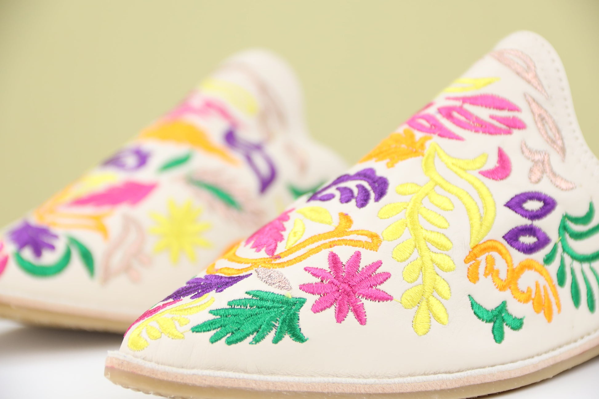 Crafted from soft leather with intricate embroidery, these iconic slippers blend traditional design with modern comfort for a touch of North African elegance.
