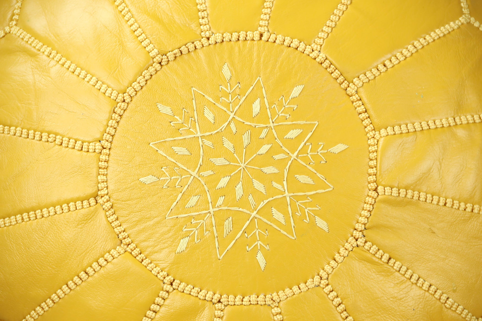 Yellow Leather Ottoman Pouf