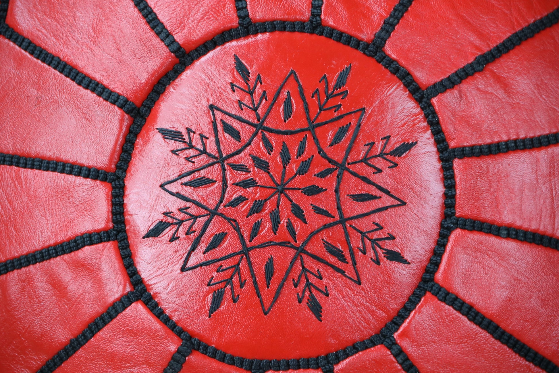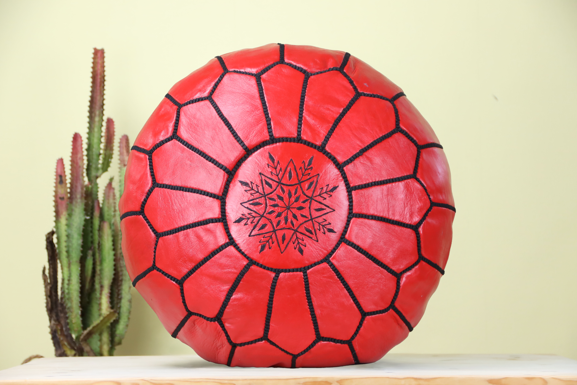 Each leather pouf is intricately handwoven by skilled Moroccan artisans.