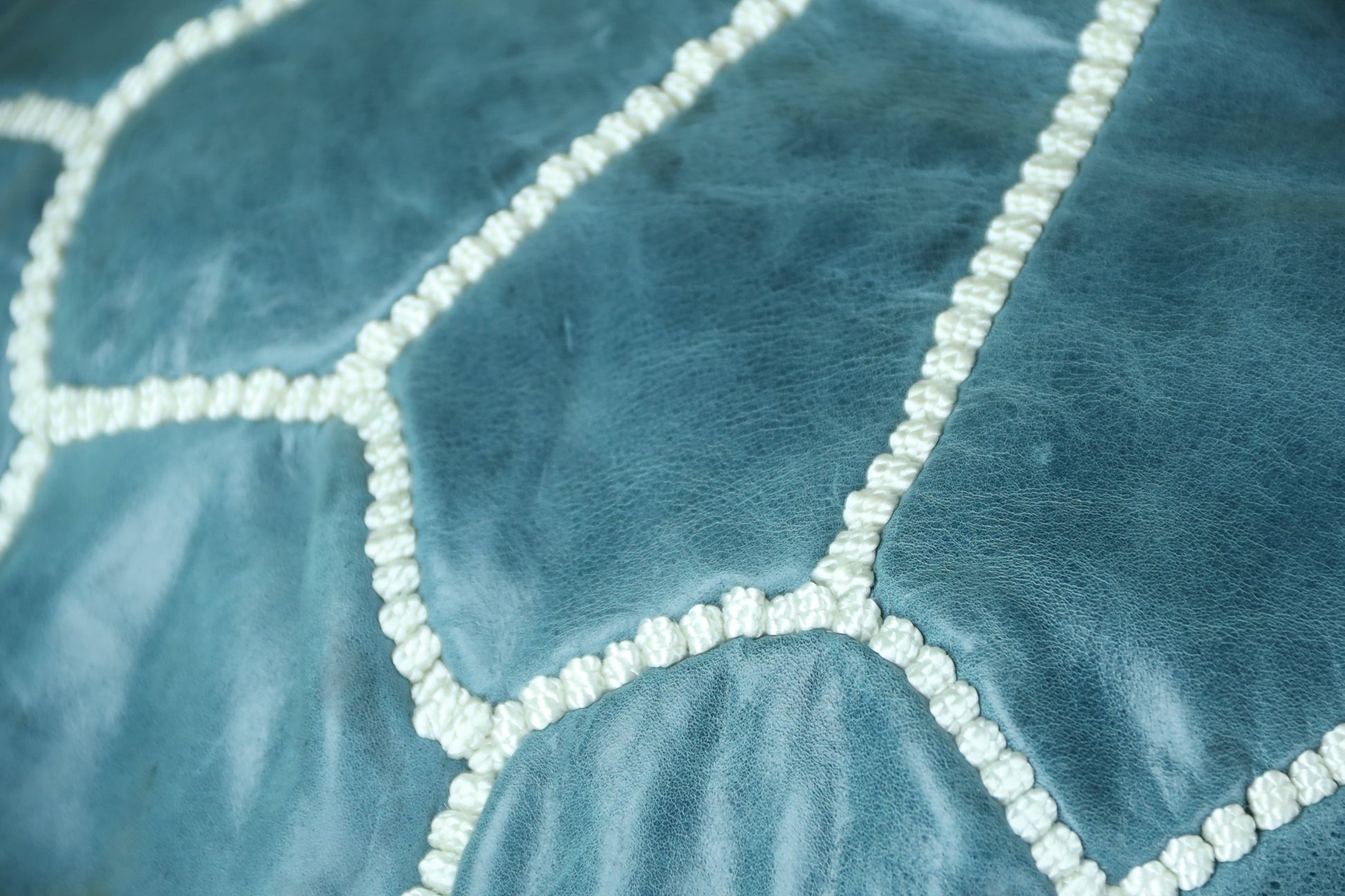 Ceramic Blue Leather Ottoman Pouf