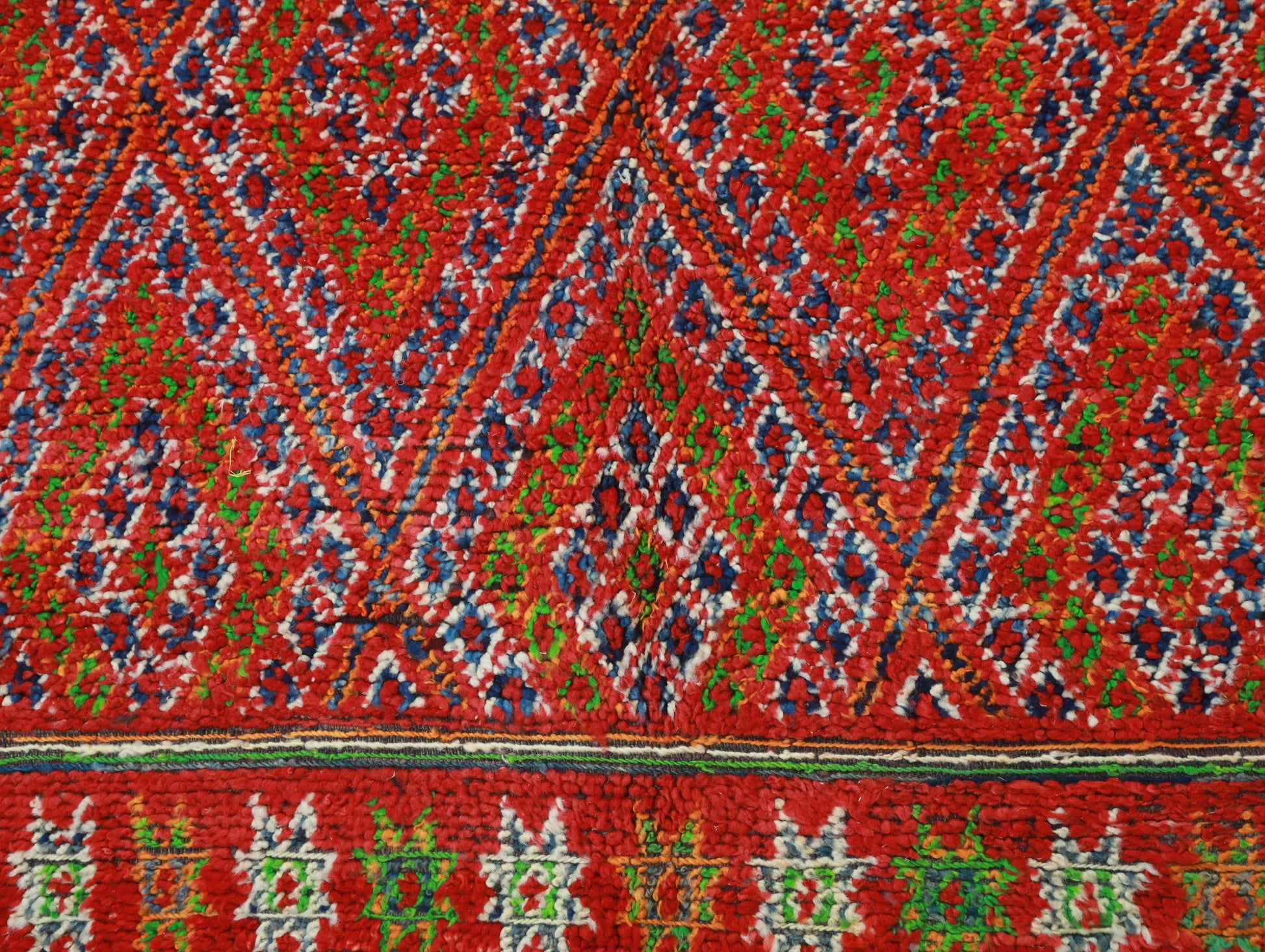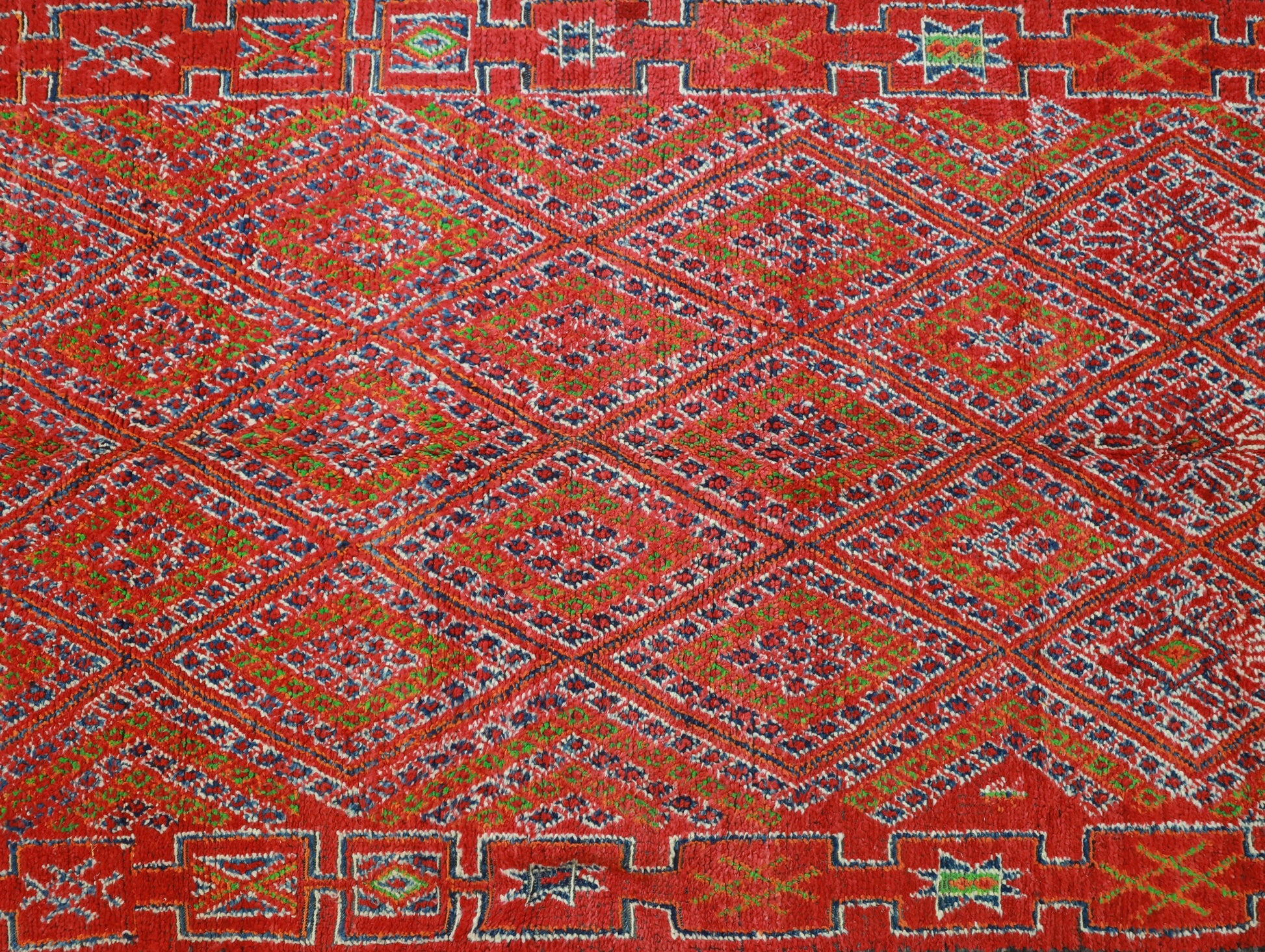 A truly unique vintage rug, meticulously hand-knotted by the Zemmour tribes from Morocco's Middle Atlas range.
