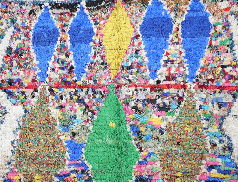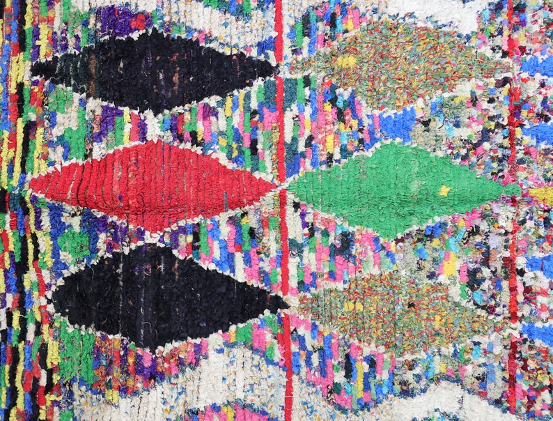 An unparalleled vintage masterpiece, carefully crafted by Berber Tribes in the Boucherouite style using upcycled textiles.