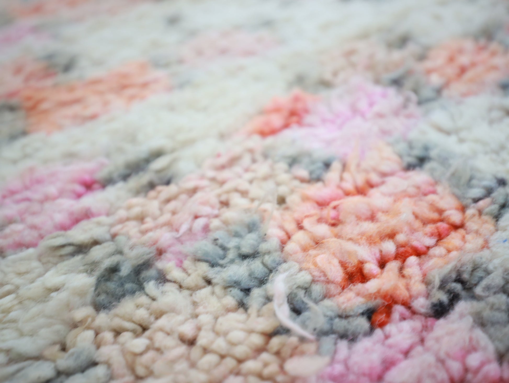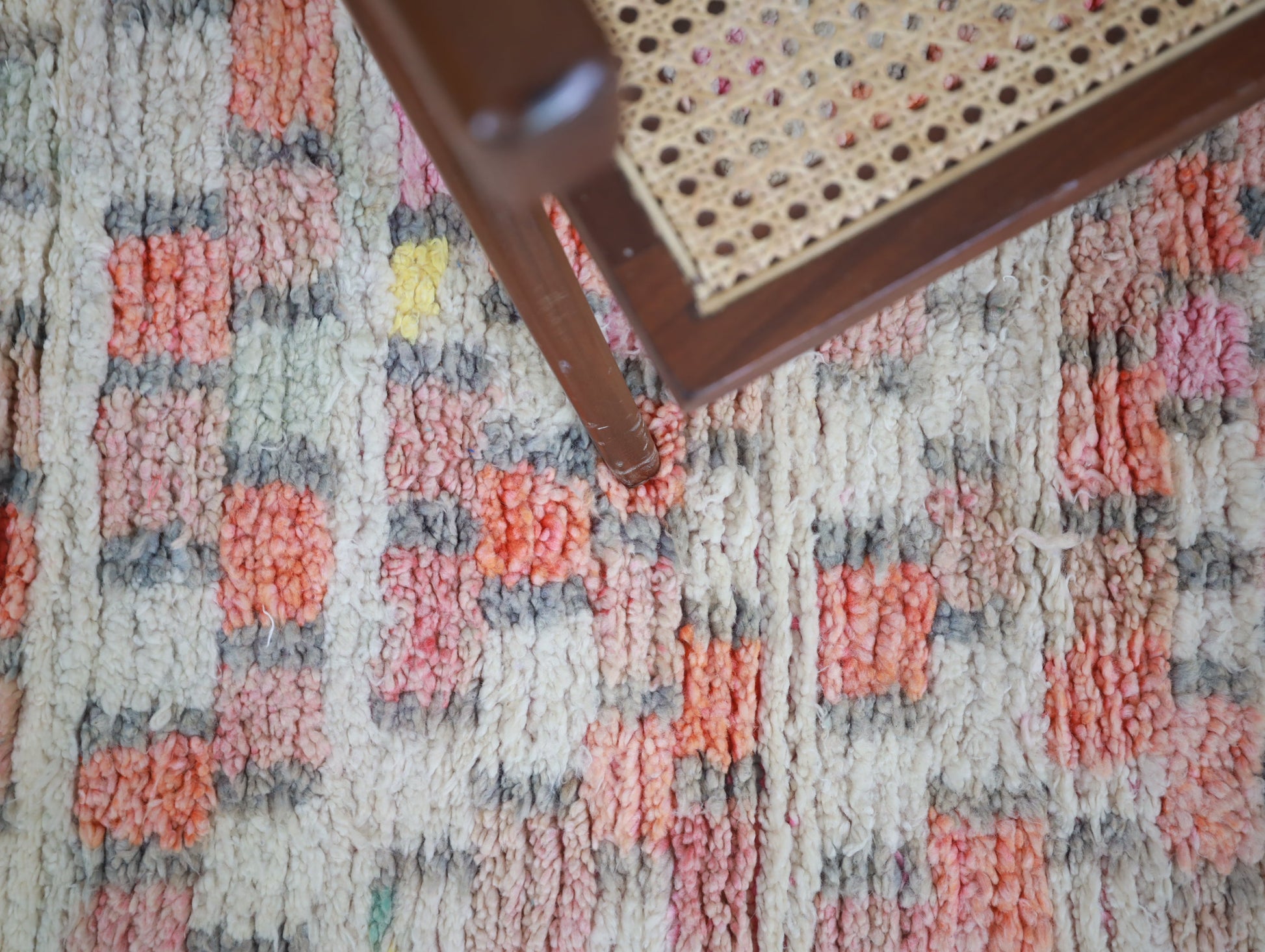 A singular moroccan rug, meticulously woven in the small city of Boujaad in Morocco's Chaouia-Ouardigha region.