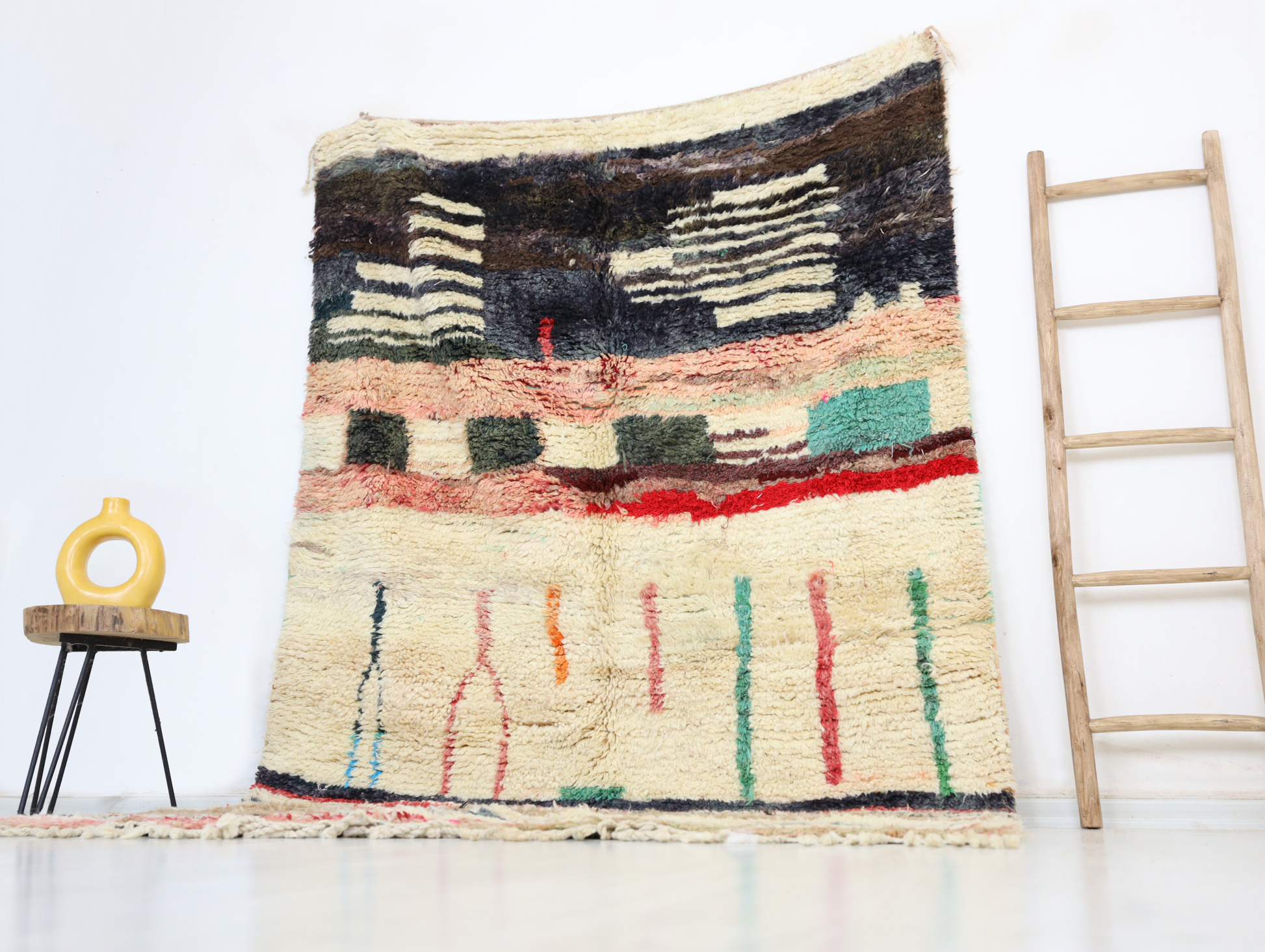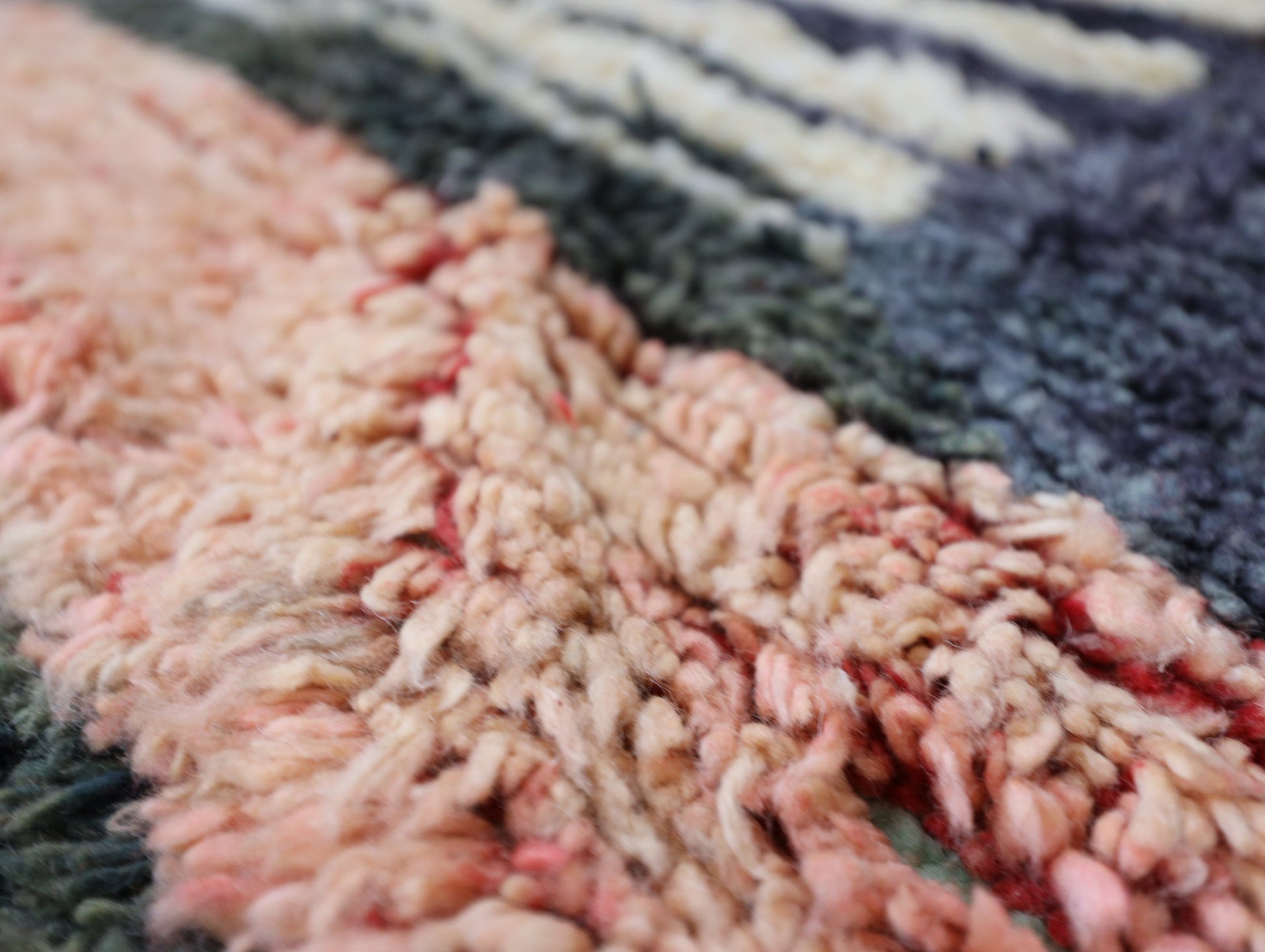 A singular moroccan rug, meticulously woven in the small city of Boujaad in Morocco's Chaouia-Ouardigha region.