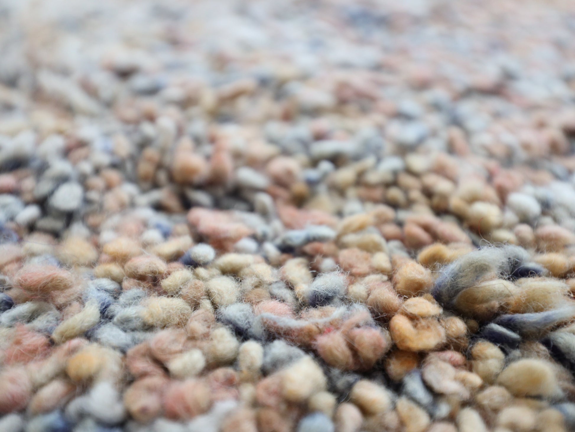 Locally sourced Moroccan wool produces a thick, strong pile with a soft feel underfoot. Having weathered time, this hand-processed wool exudes an untamed, nubby appearance, a testament to its journey through diverse environments.