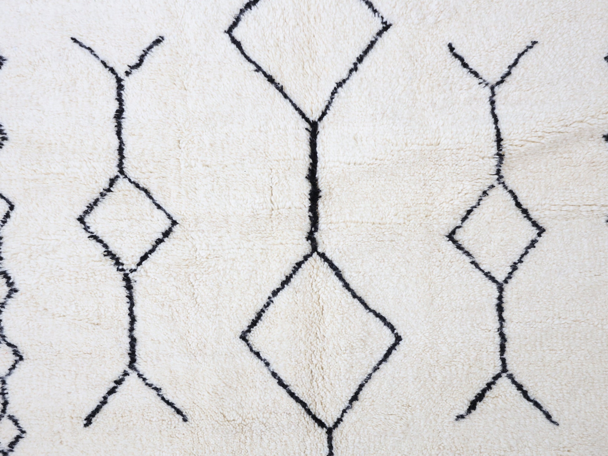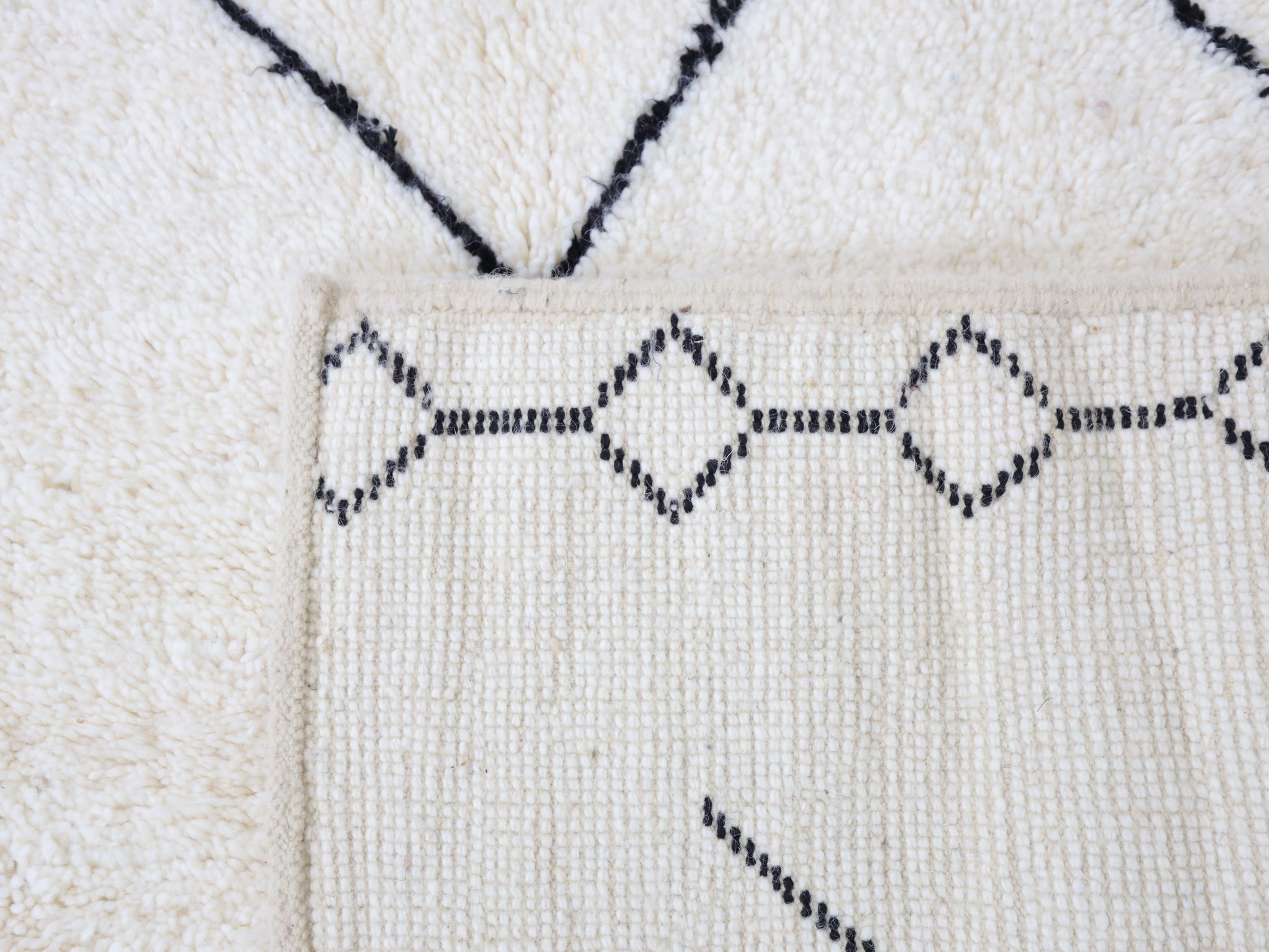 Sourced locally, Moroccan wool produces a dense, sturdy pile that feels soft and fluffy underfoot. While a touch of shedding is natural, it's a small price to pay for the cherished wild, tousled texture of the high pile—a comfort beloved for its durability, longevity, and the soft embrace it offers with every step.