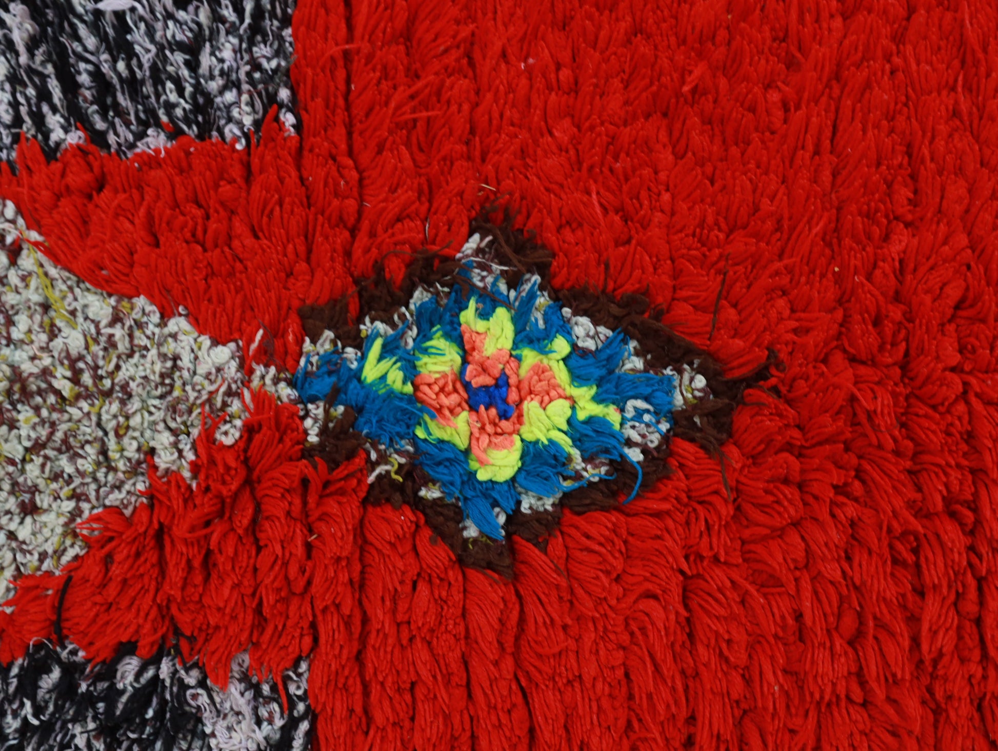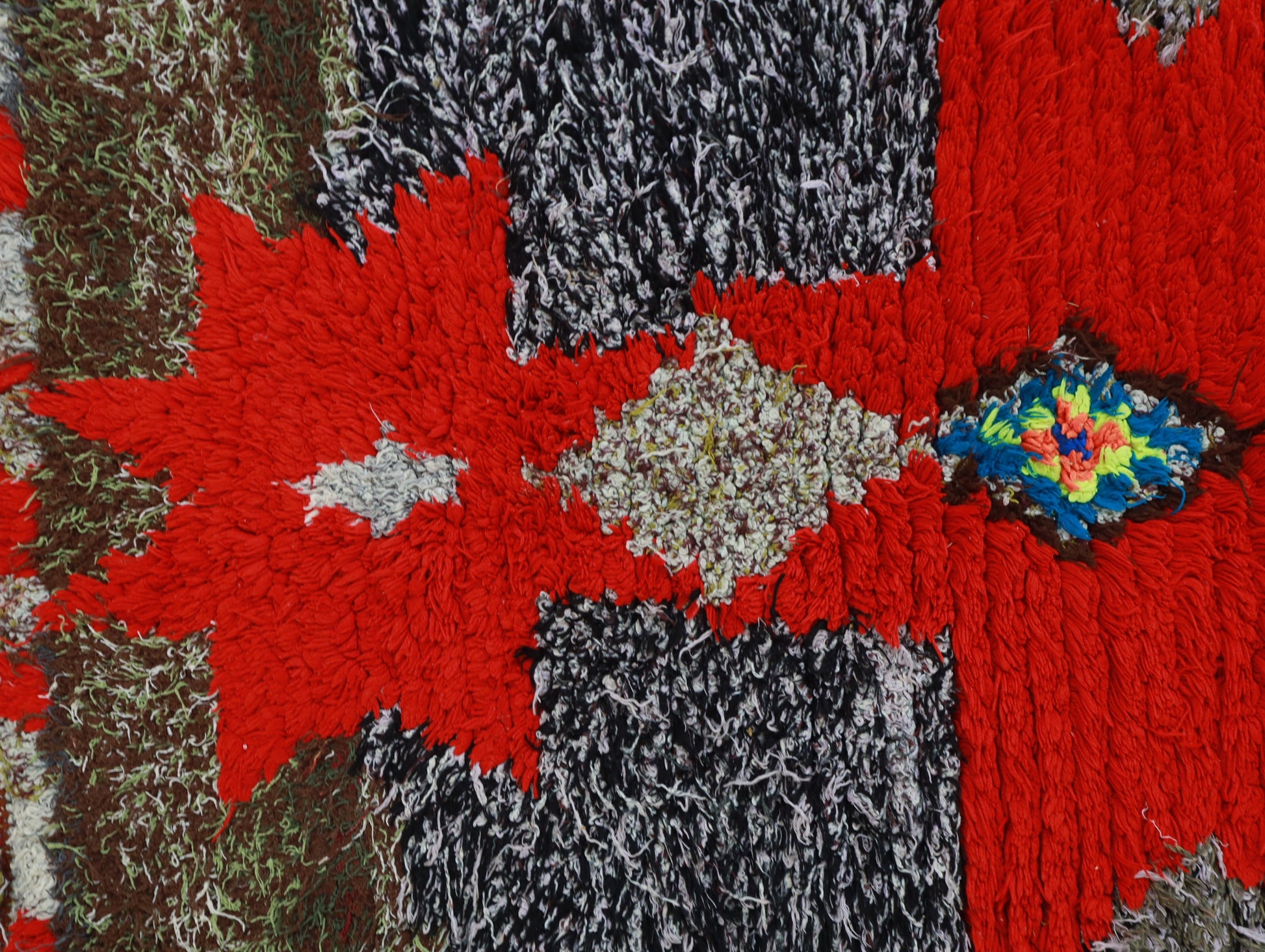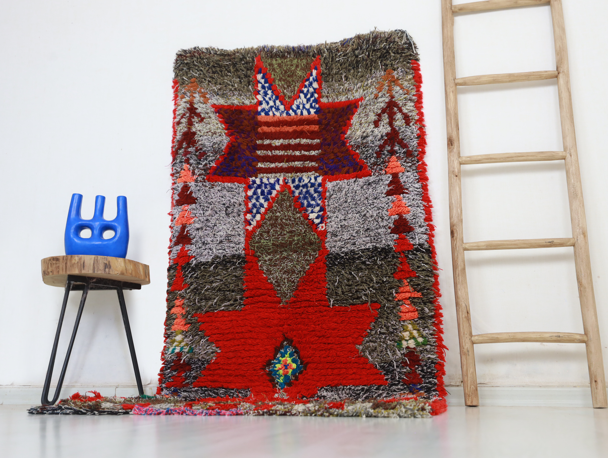 An unparalleled vintage masterpiece, carefully crafted by Berber Tribes in the Boucherouite style using upcycled textiles.
