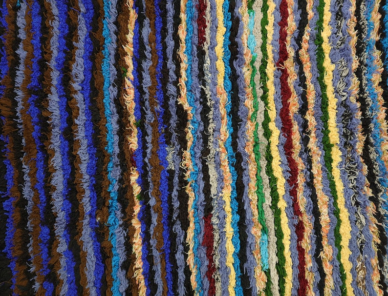 Azilal rugs boast abstract, painterly designs reminiscent of rugs from Ourika. What sets them apart is a vibrant color palette, achieved through the incorporation of cotton alongside wool..