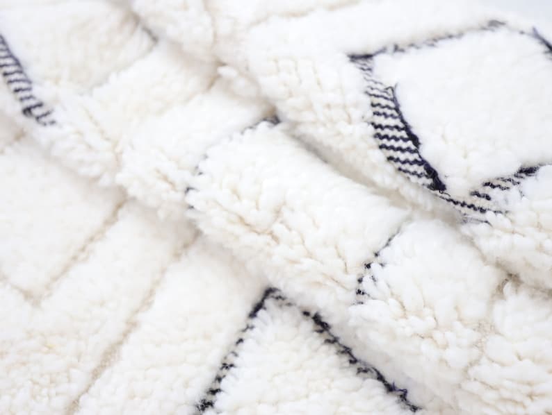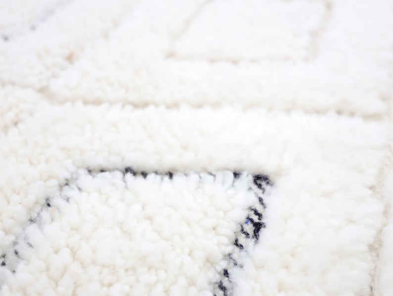 Sourced locally, Moroccan wool produces a dense, sturdy pile that feels soft and fluffy underfoot. While a touch of shedding is natural, it's a small price to pay for the cherished wild, tousled texture of the high pile—a comfort beloved for its durability, longevity, and the soft embrace it offers with every step.