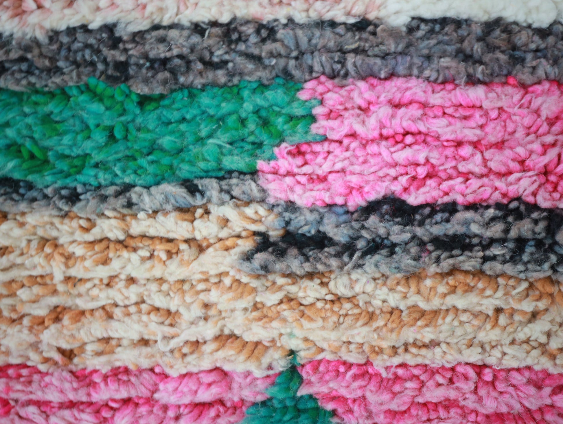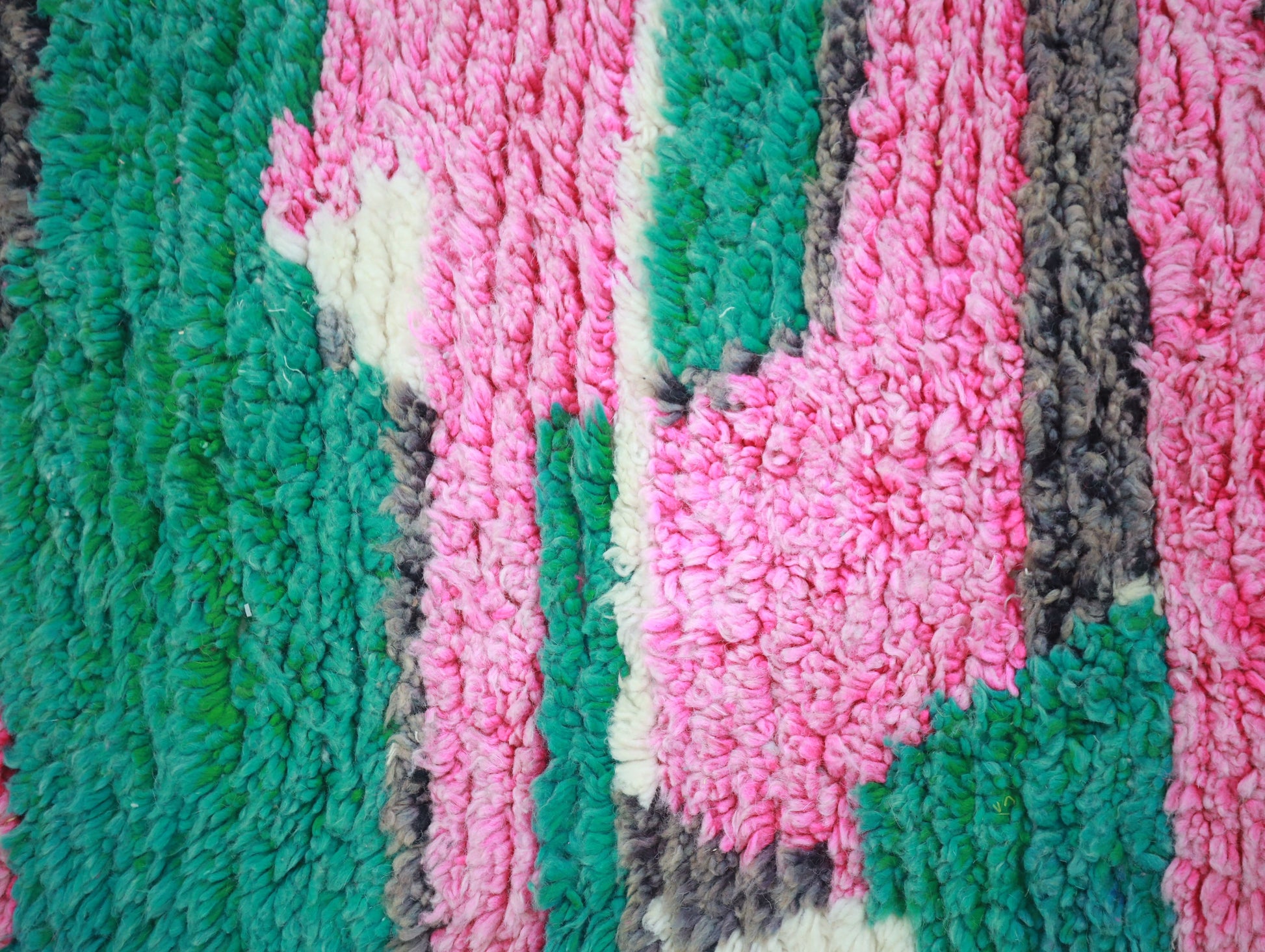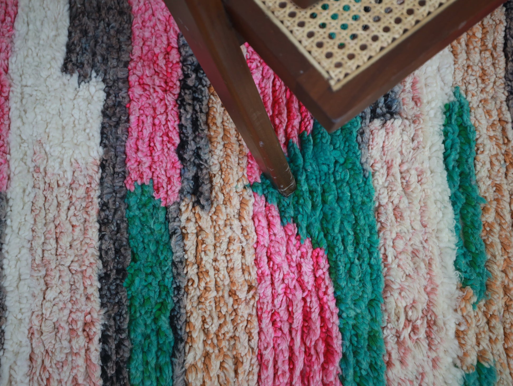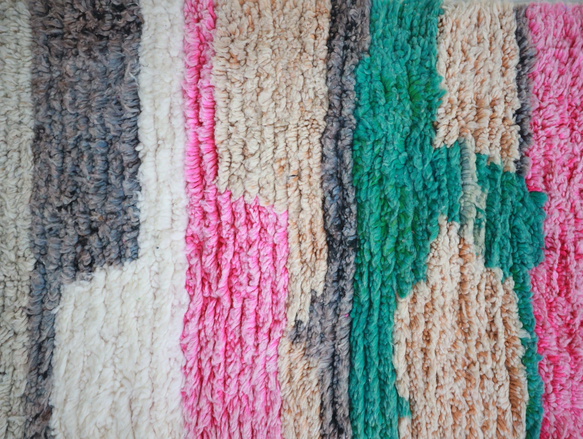 A singular moroccan rug, meticulously woven in the small city of Boujaad in Morocco's Chaouia-Ouardigha region.