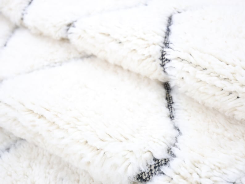Sourced locally, Moroccan wool produces a dense, sturdy pile that feels soft and fluffy underfoot. While a touch of shedding is natural, it's a small price to pay for the cherished wild, tousled texture of the high pile—a comfort beloved for its durability, longevity, and the soft embrace it offers with every step.